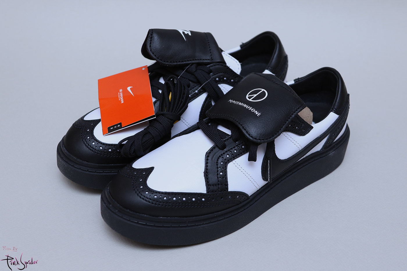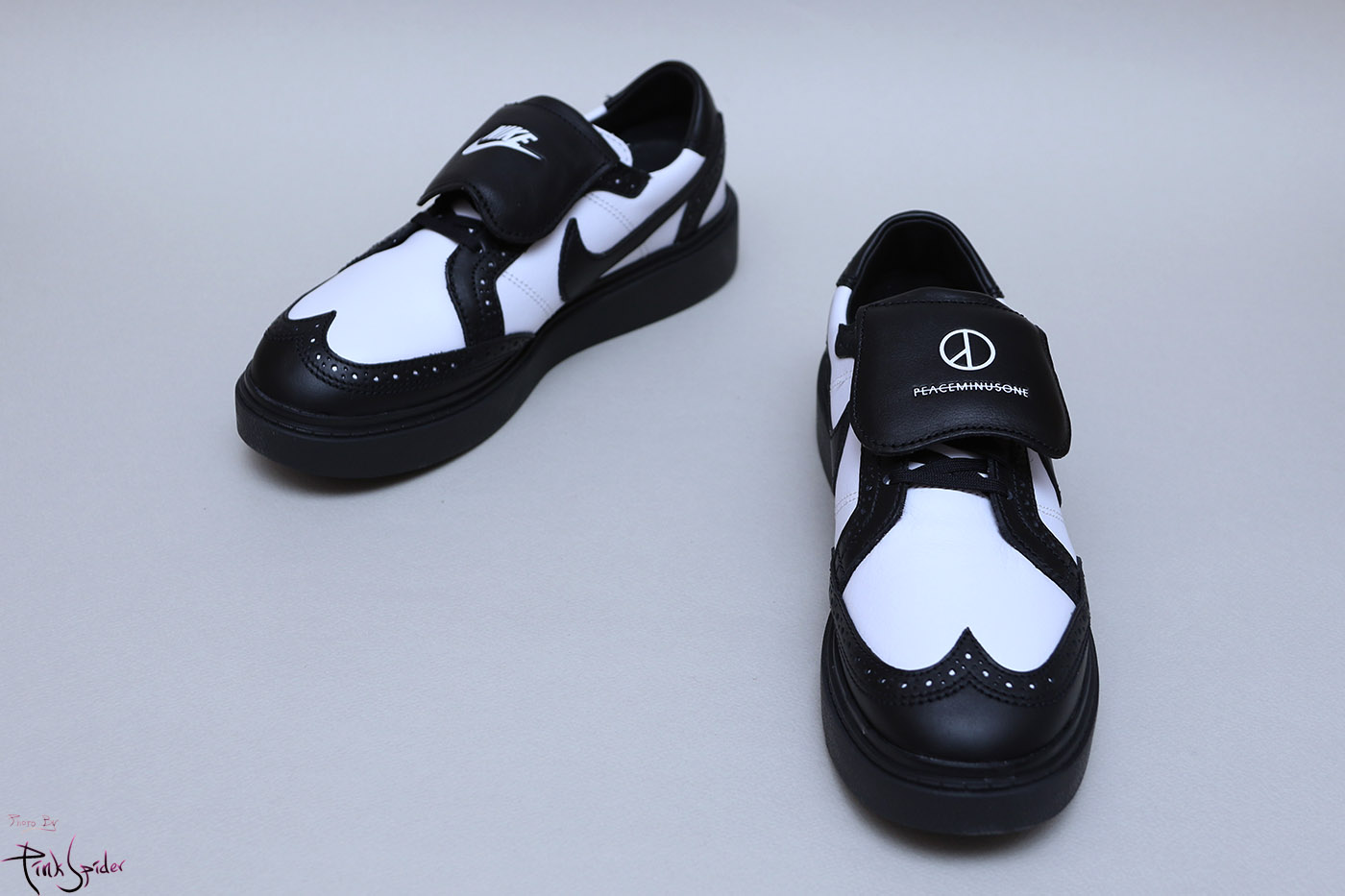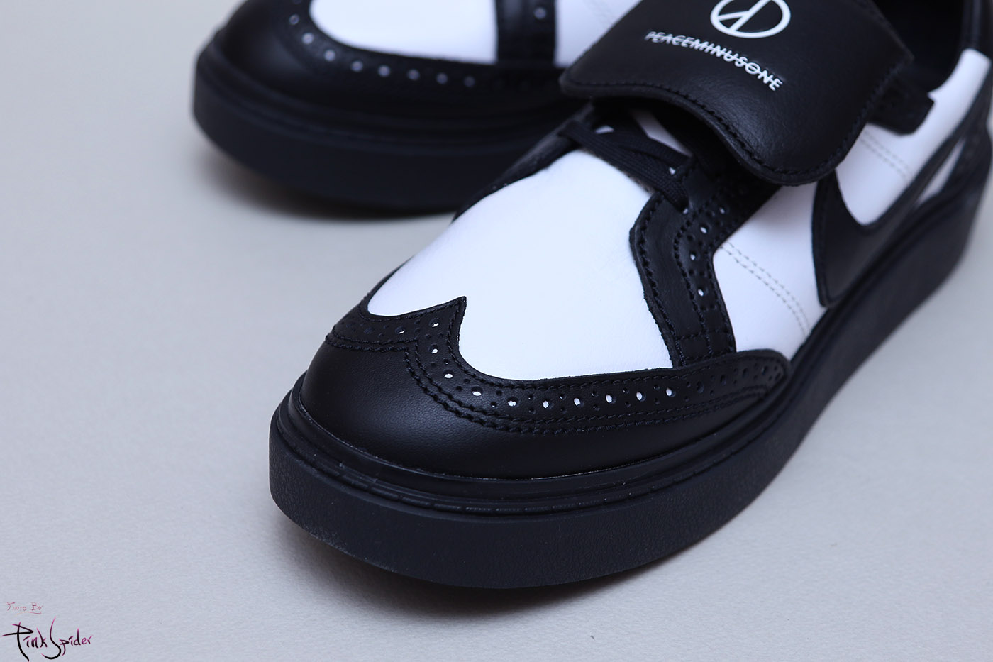 혀부분은 나이키로고에 피스마이너스원 로고까지 자수로 새겨져 있고