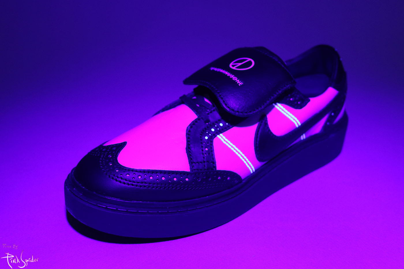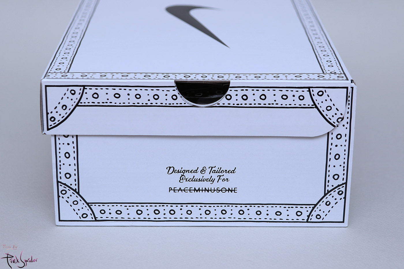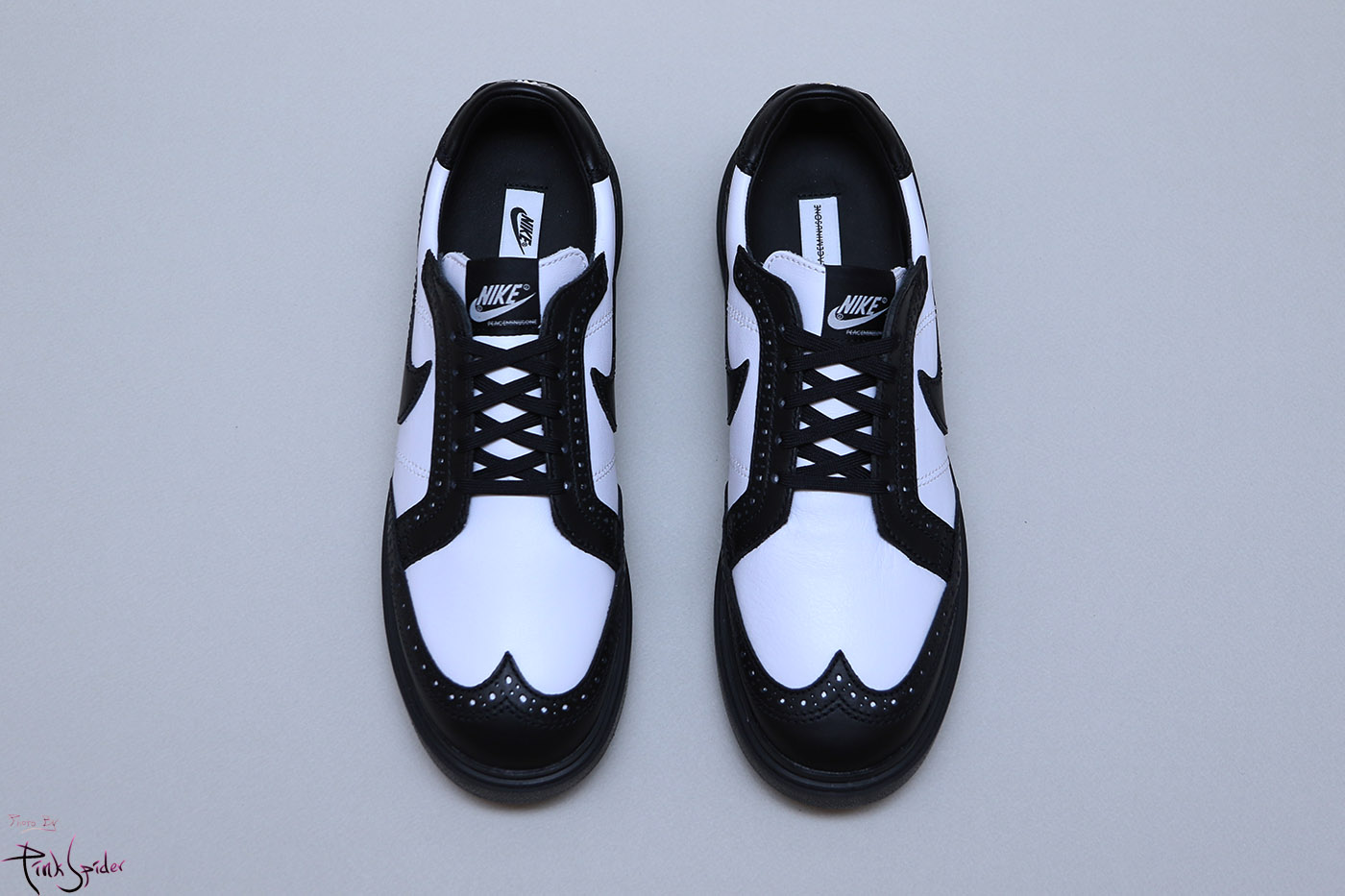혀부분은 나이키로고에 피스마이너스원 로고까지 자수로 새겨져 있고
