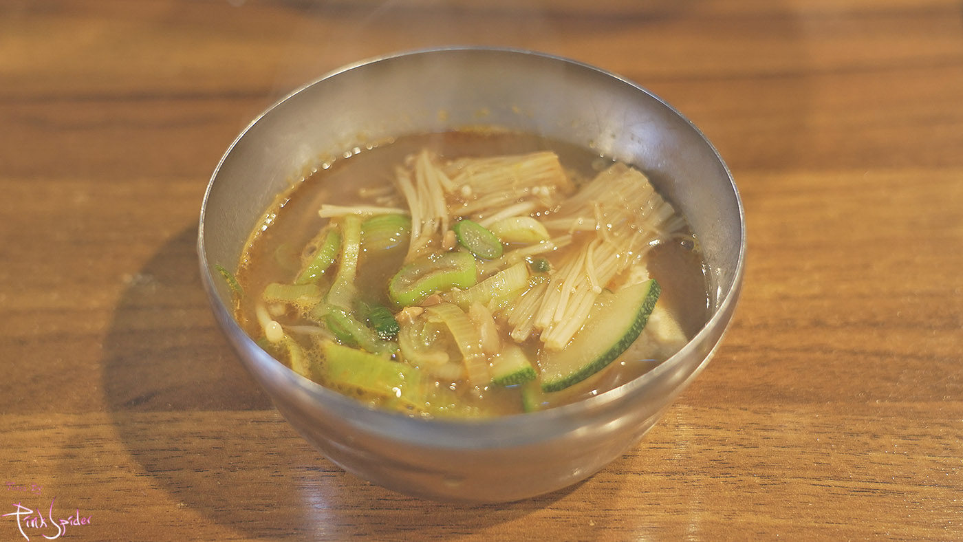 무겁지도 가볍지도 않은 스탠다드한 된장맛에 팽이버섯 사이사이로 스며든 찌개 국물이 꽤 맛있게 느껴지더라.
