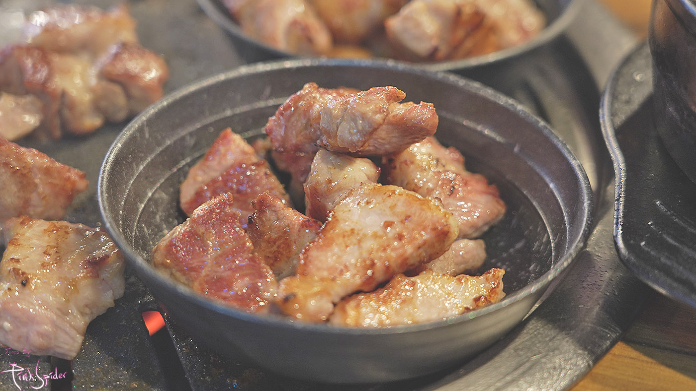 기본적으로 불판의 온도를 첵크하고 적정온도라고 생각하면 그 때 고기를 올려준다.