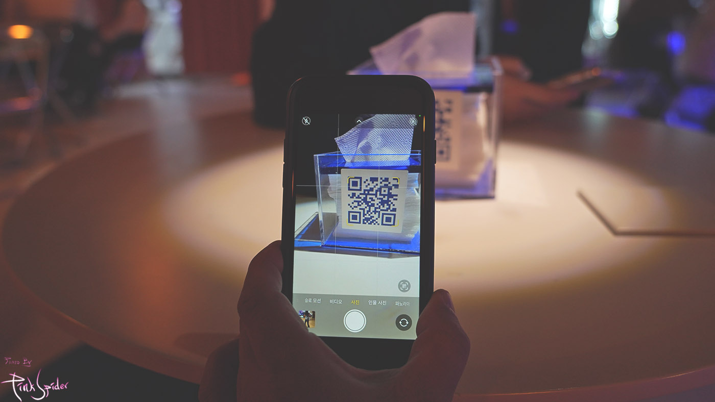 메뉴판이 따로 있지 않고 이렇게 QR 코드를 찍어서 보는게 살짝 힙한 느낌이 들더라.