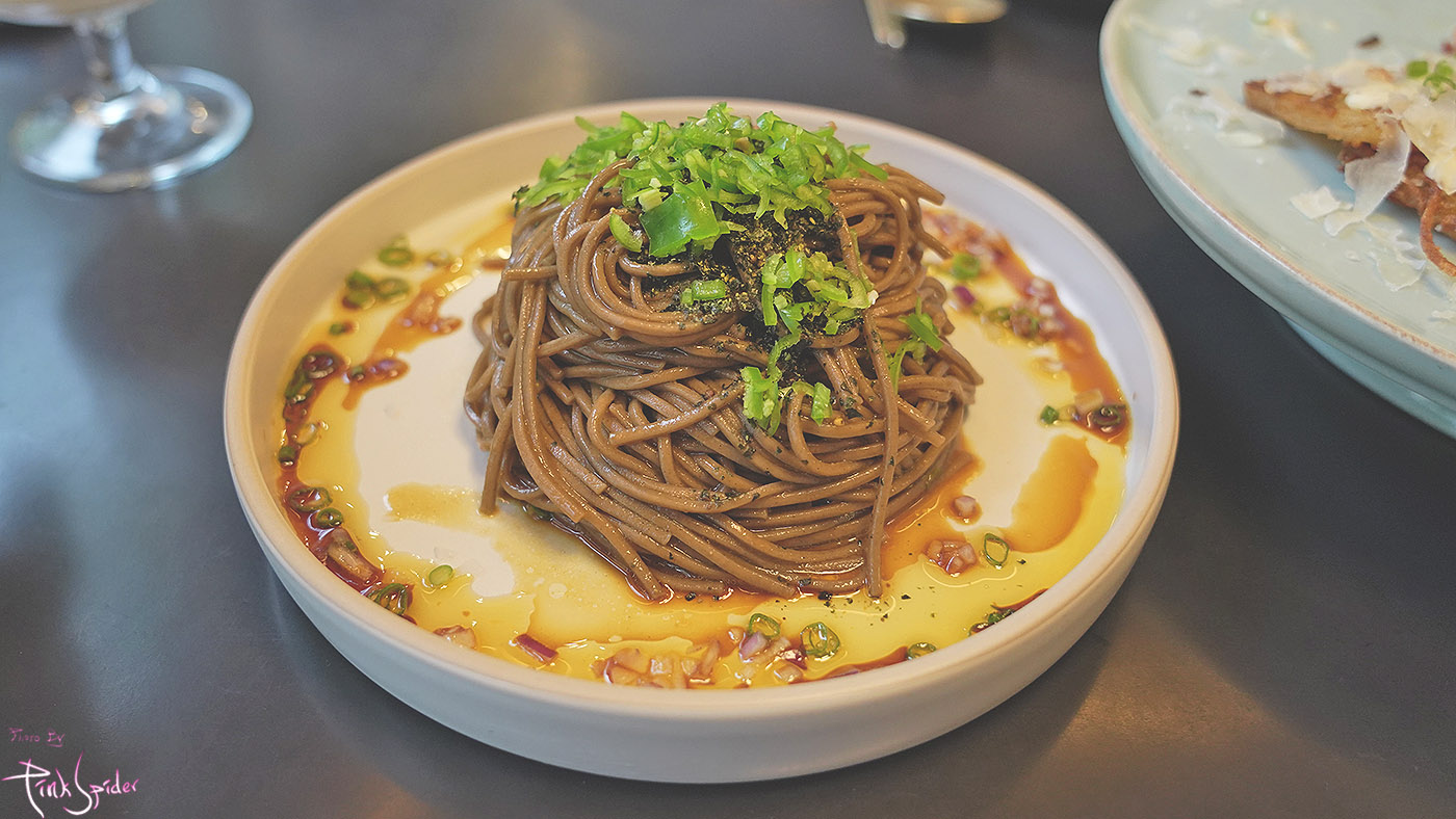 테이블에 올려질 때부터 들기름향이 퍼지는데 들기름을 메밀면에 아주 촉촉하게 코팅을 한 것 같더라.