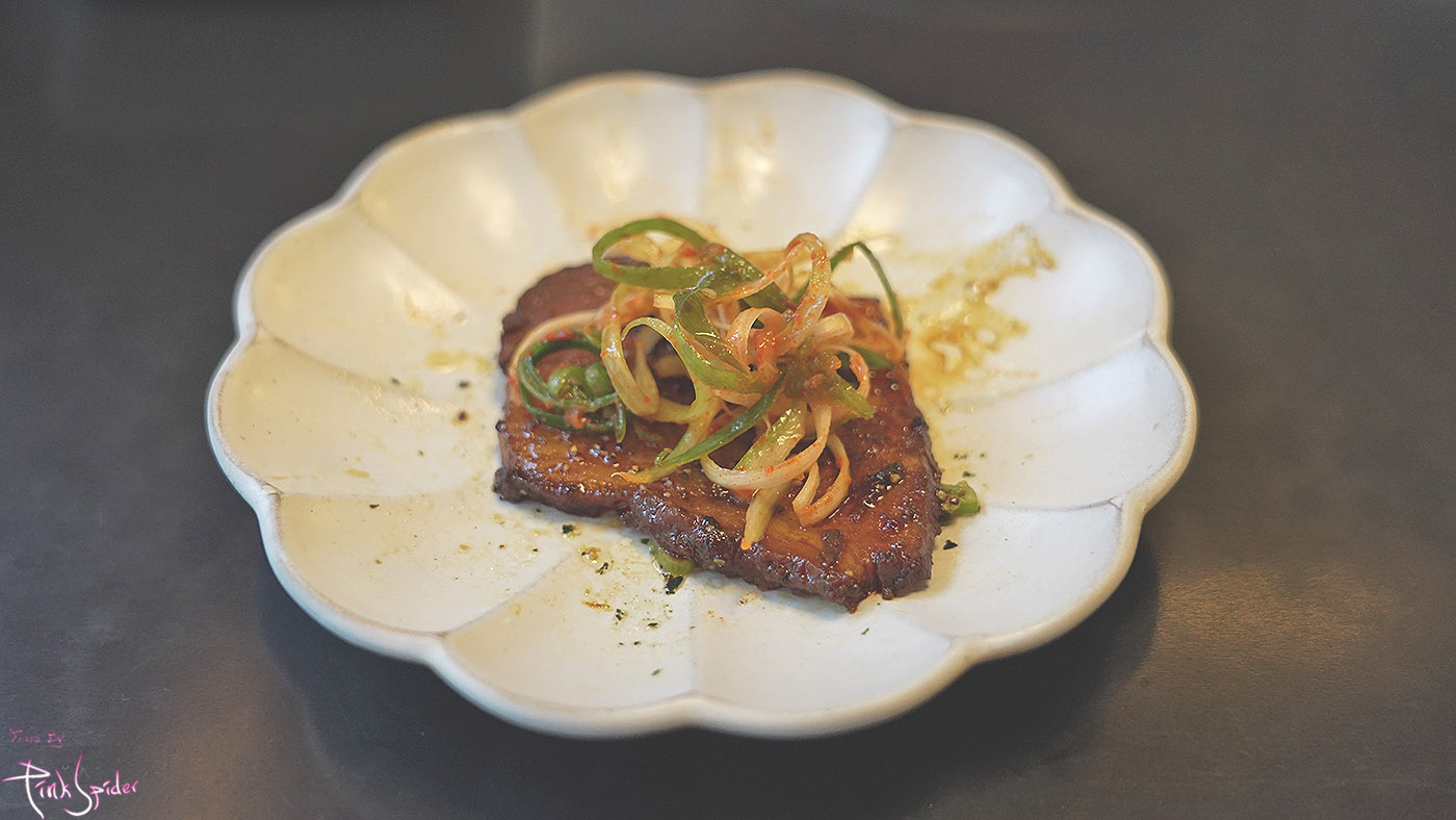 이게 우대갈비 부위가 아닌가 싶은데 같이 곁들여진 파절임과 먹으면 이 조합도 상당히 좋았음