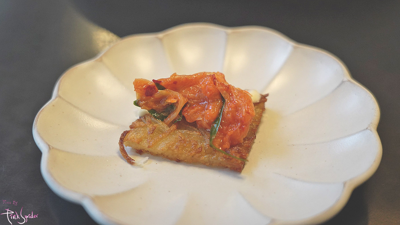 먼저 반찬으로 김치가 나왔다. 근데 이게 은근히 예술이더라.