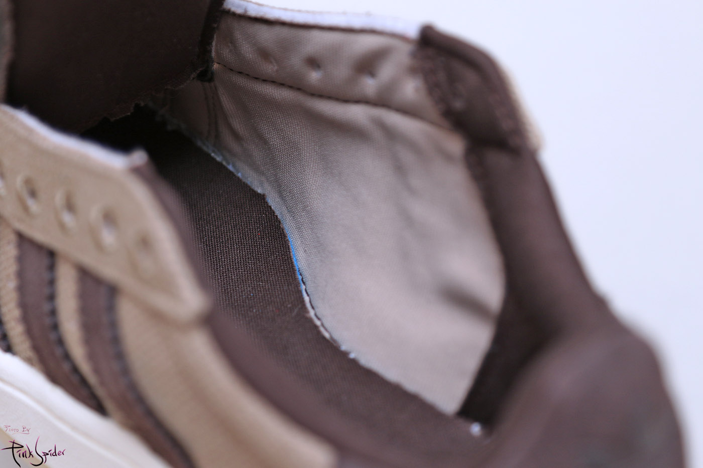 그리고 짙은 브라운 컬러 부분은 스웨이드 재질을 사용했는데