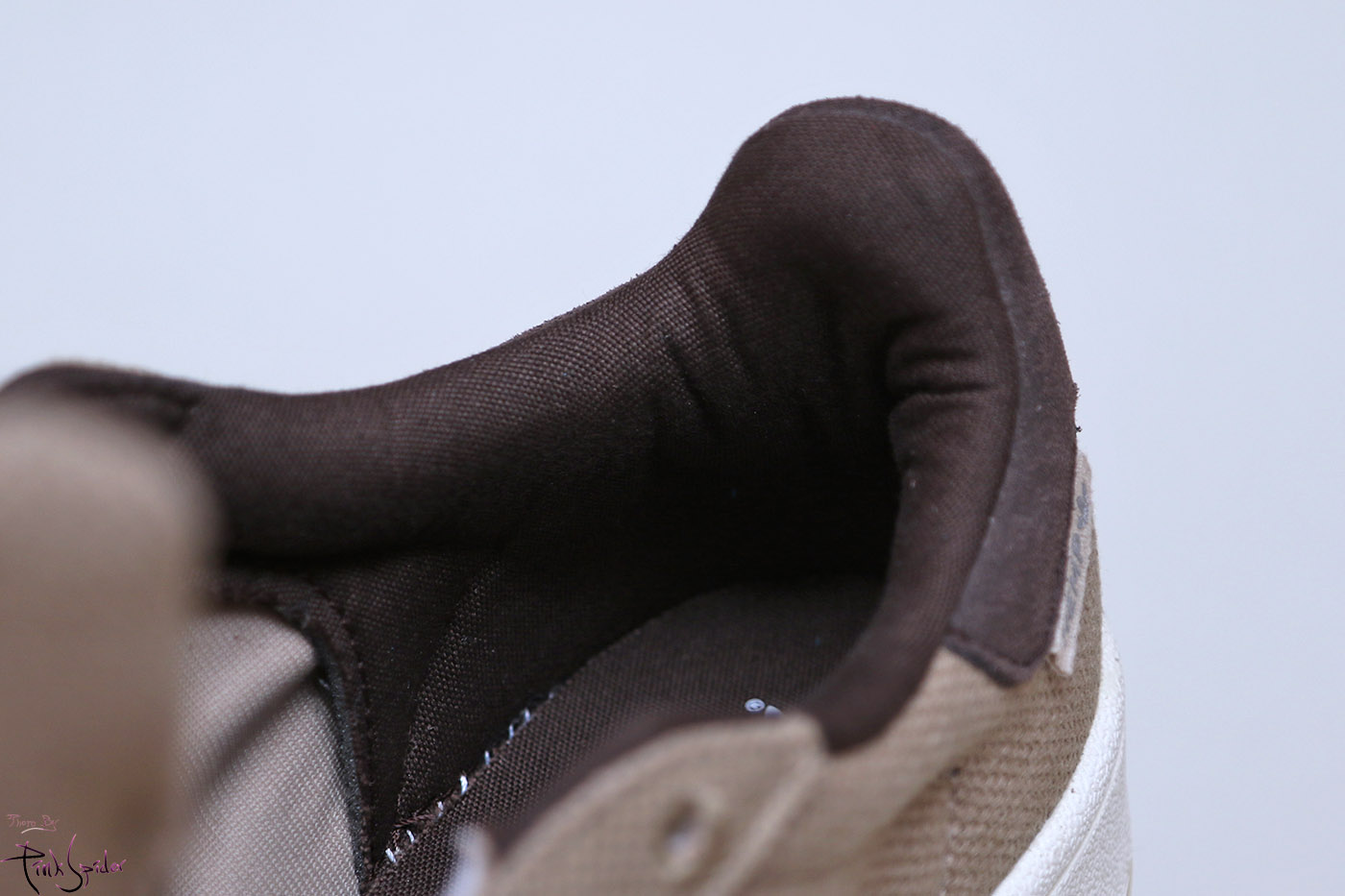 로고는 스웨이드 원단에 티테일을 넣은 정도
