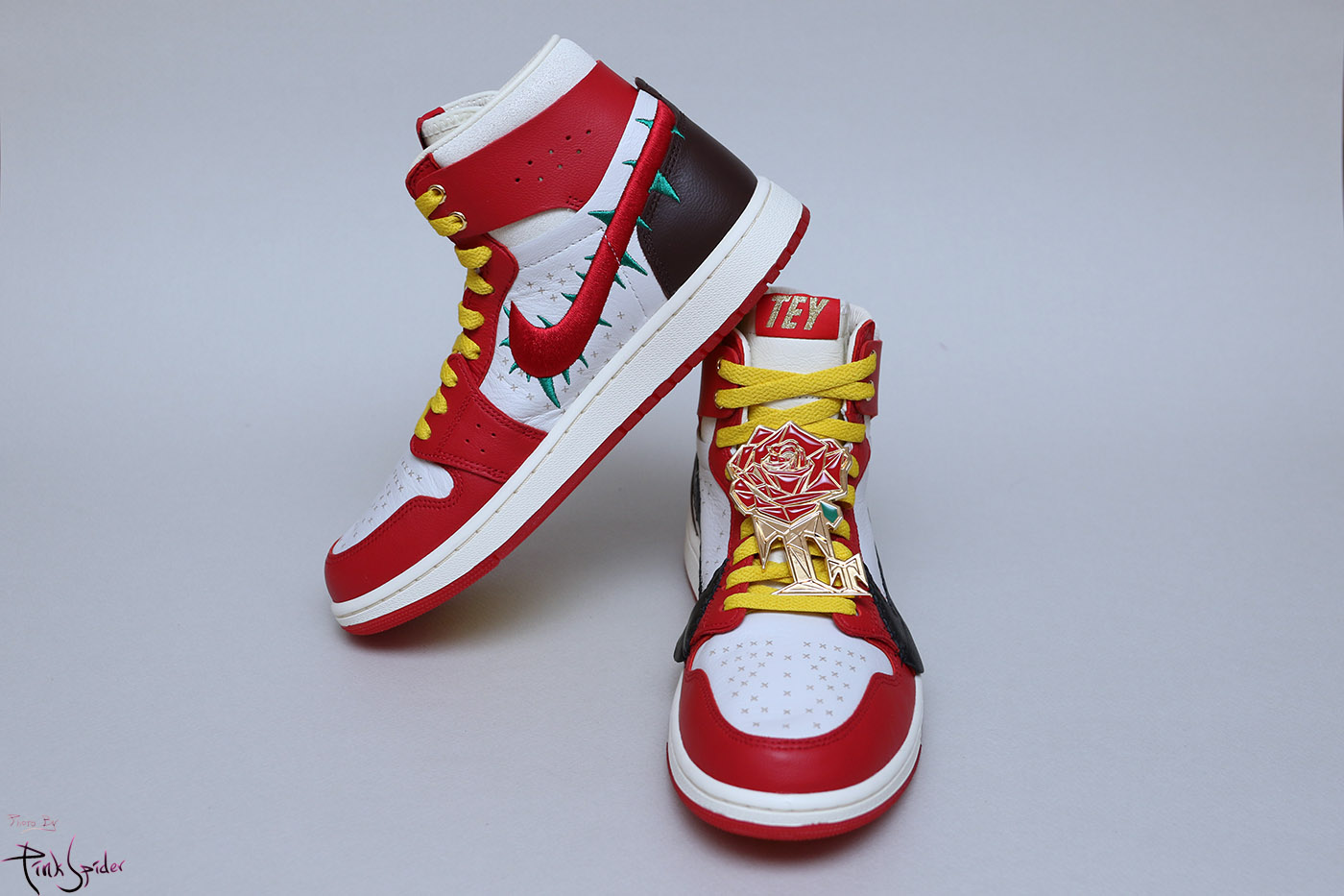 할렘가의 아름다움을 장미로써 조던1에 입혀서 표현한 콜라보라고 하는 것 같더라.