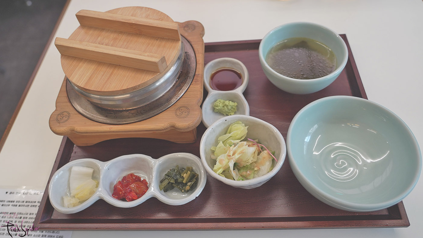 먹기 전에 솥밥에 남은 밥에 물을 넣어서 숭늉처럼 먹을 수 있으니 물을 미리 요청하는 것도 괜찮을 듯~