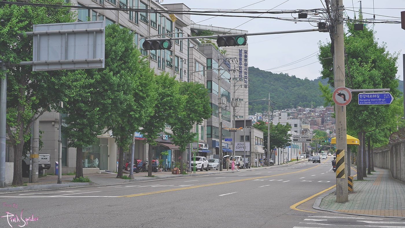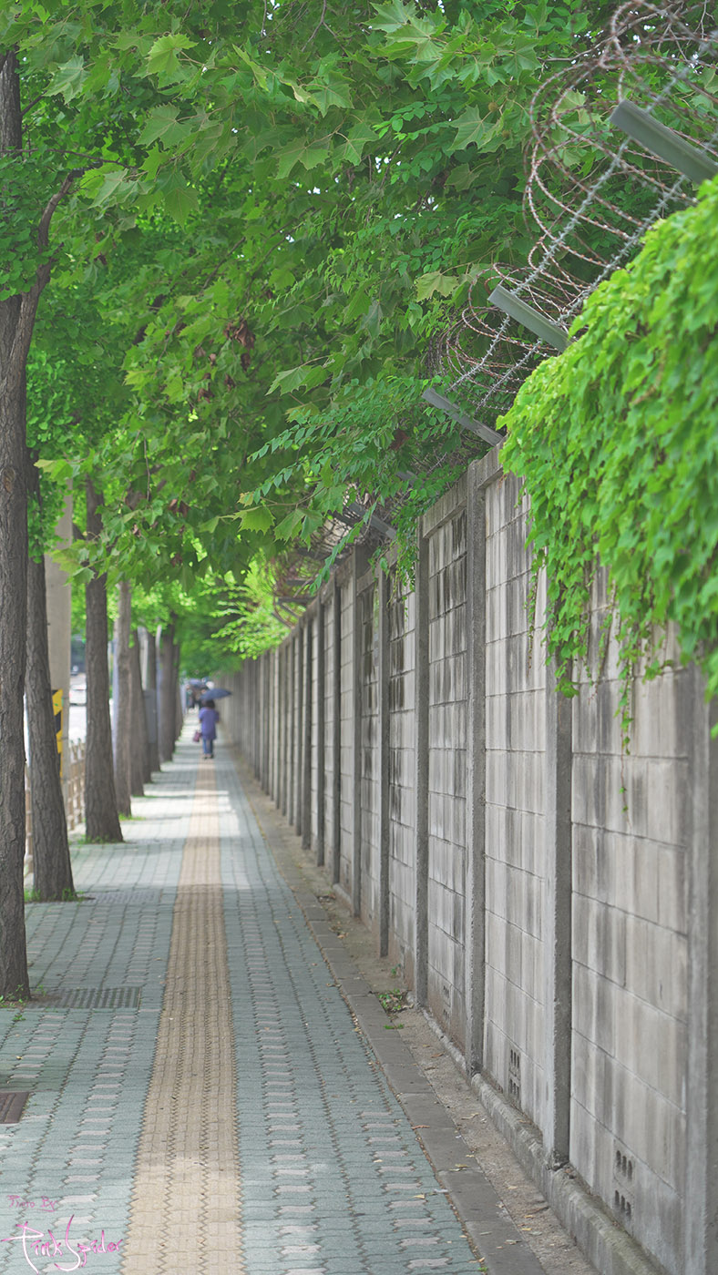 서울에서 벽과 나무들만이 서로 마주보면서 이렇게 길게 뻤은 거리는 아마 보기 힘들 것 같다.