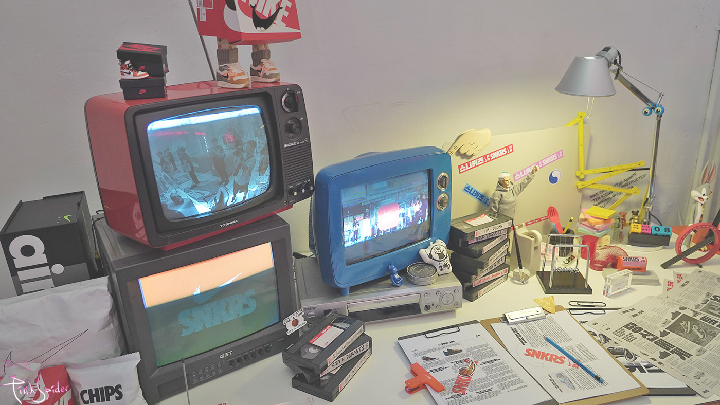 마치 스니커에 열광하는 10대의 방을 표현한 느낌이라고 할까?