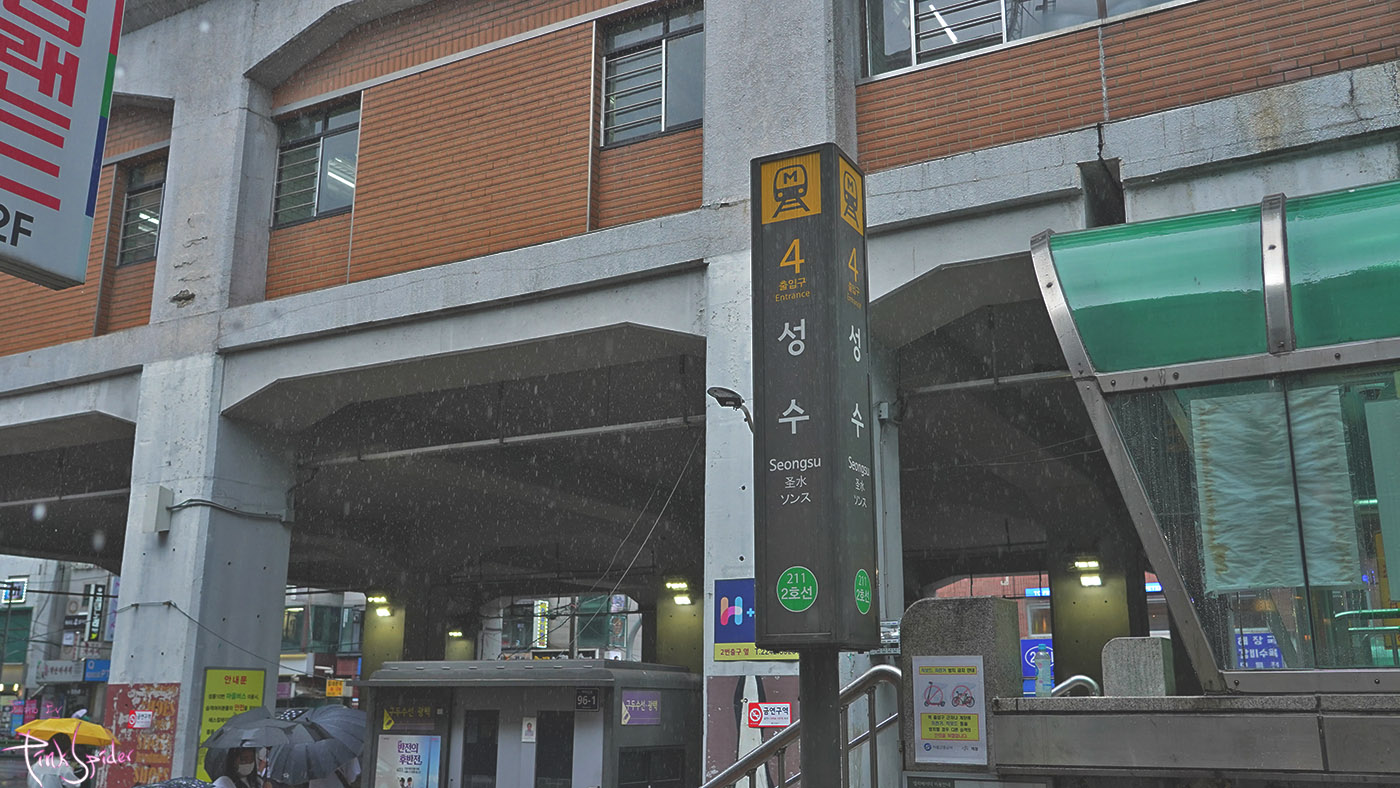 성수역이 도착하니 '너 올 줄 알았다~ㅋㅋ'라고 비웃듯이 그냥 퍼붓는다...
