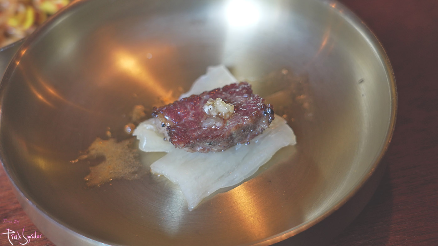 겉은 바삭한 느낌에 이에 살짝 다른 듯한 두가지 육향이 느껴지는게 참 신기하기도 하고 맛있었음