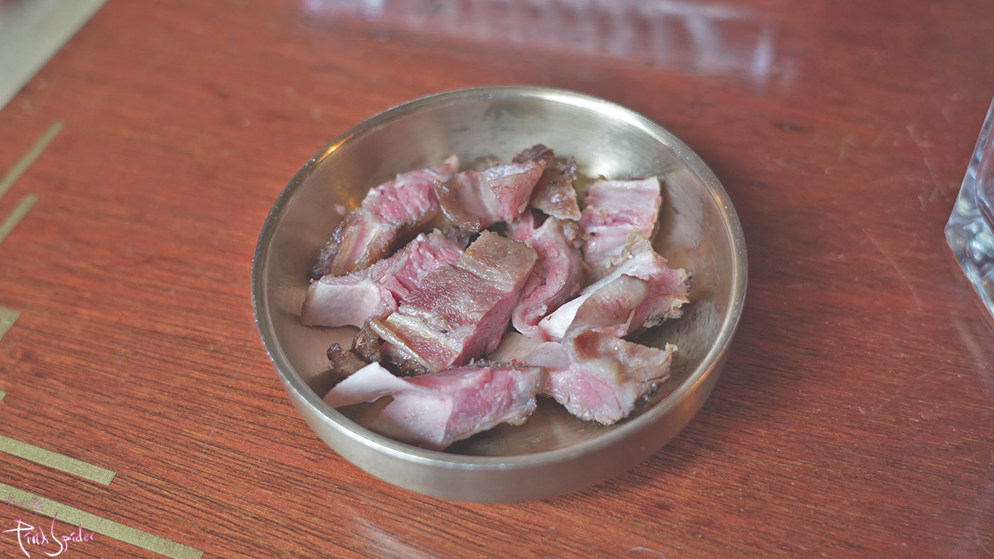 우대뼈에 붙어 있는 고기는 따로 잘게 잘라서 구워주는데