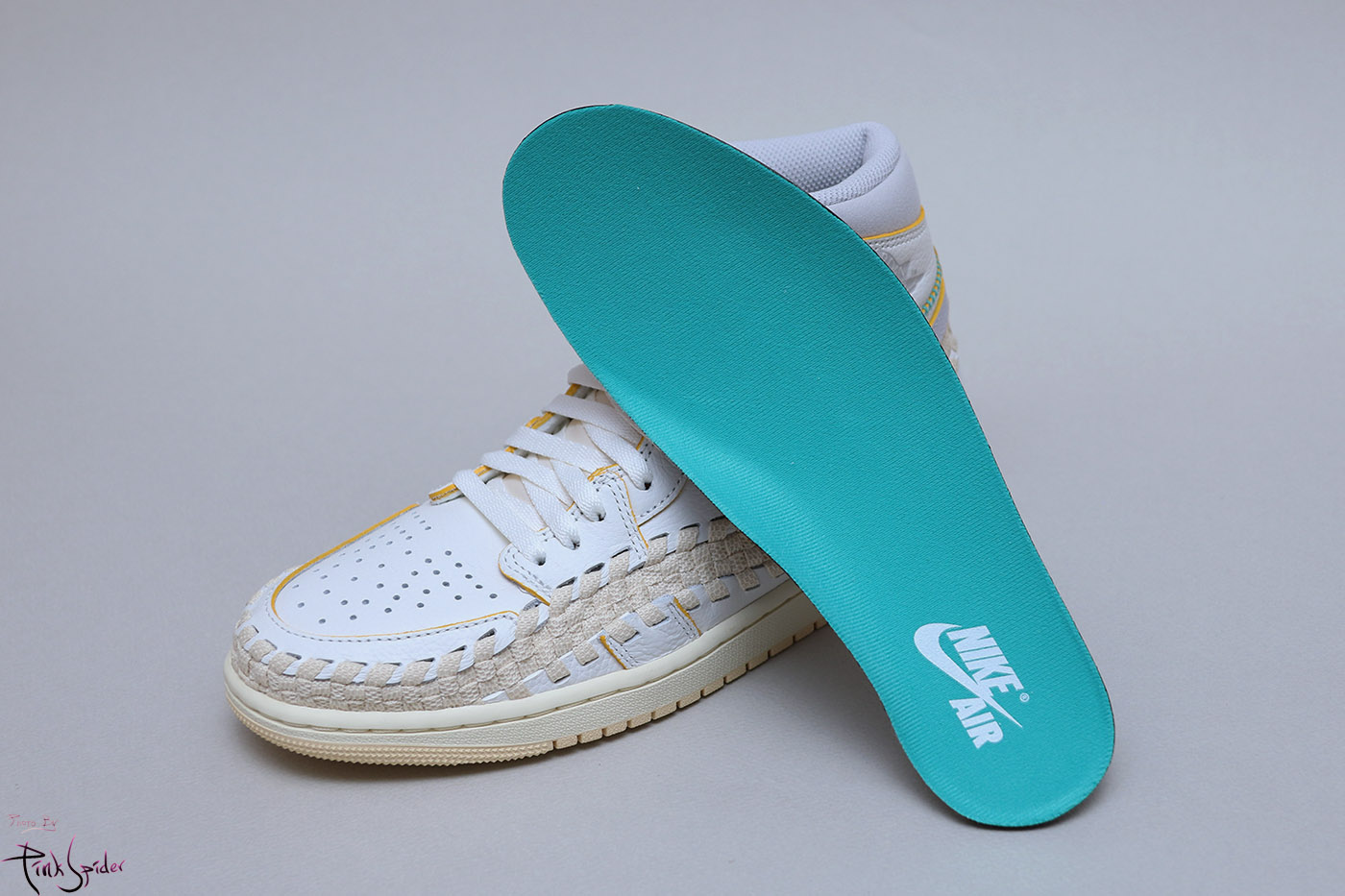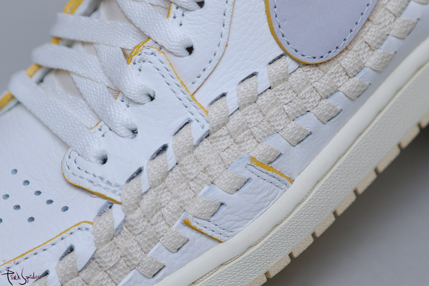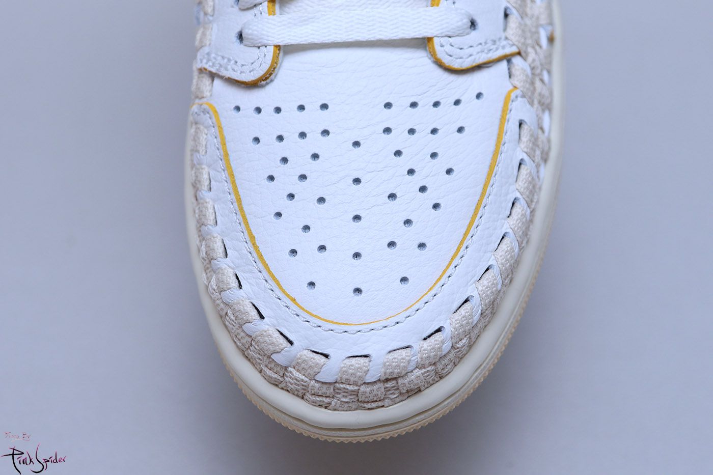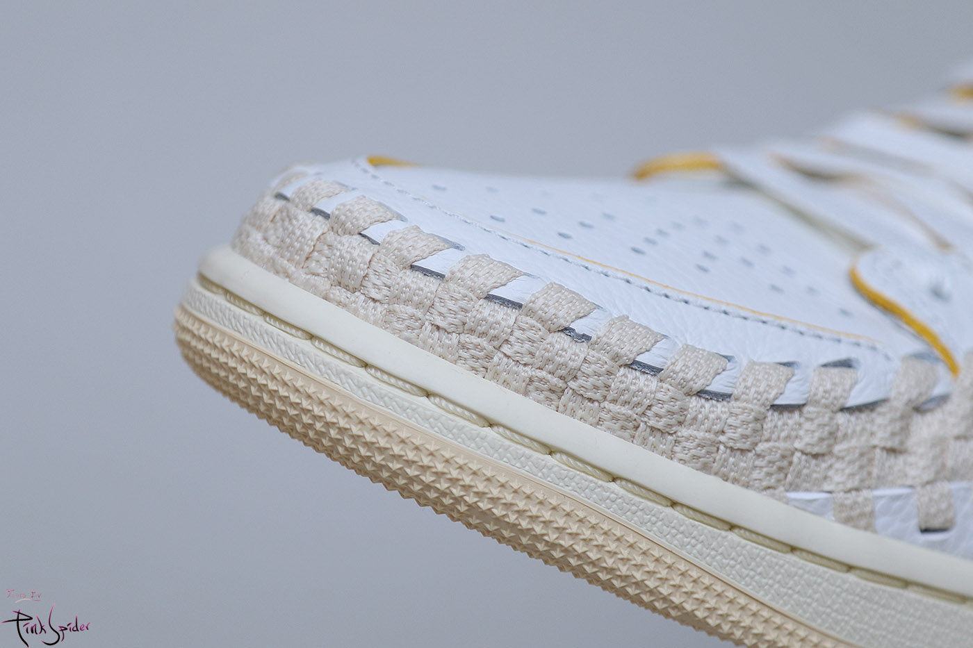 여기에 영감을 받아서 풋스케이프의 우븐 소재를 가져와서 조던1에 접목을 시켰다는 비하인드 스토리를 얘기해줬는데