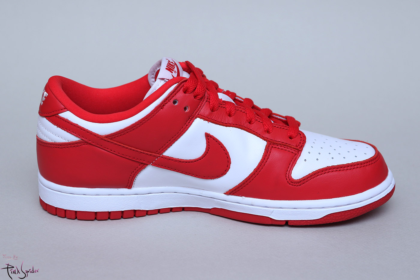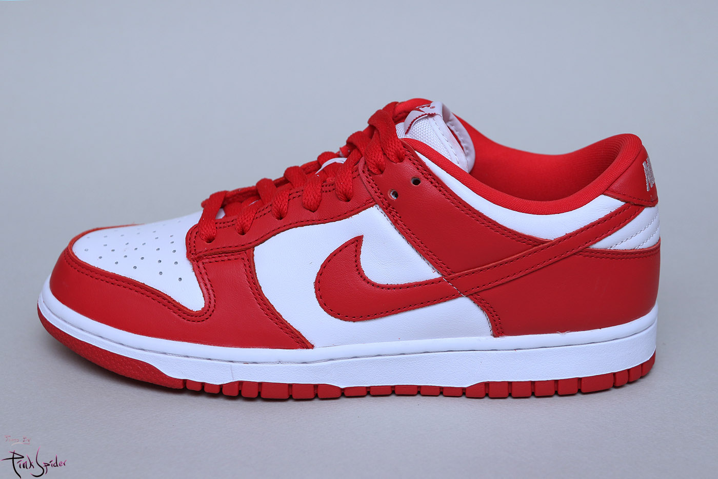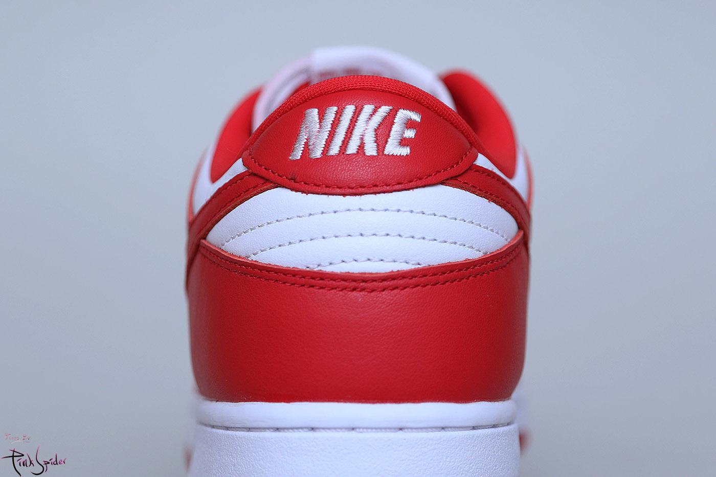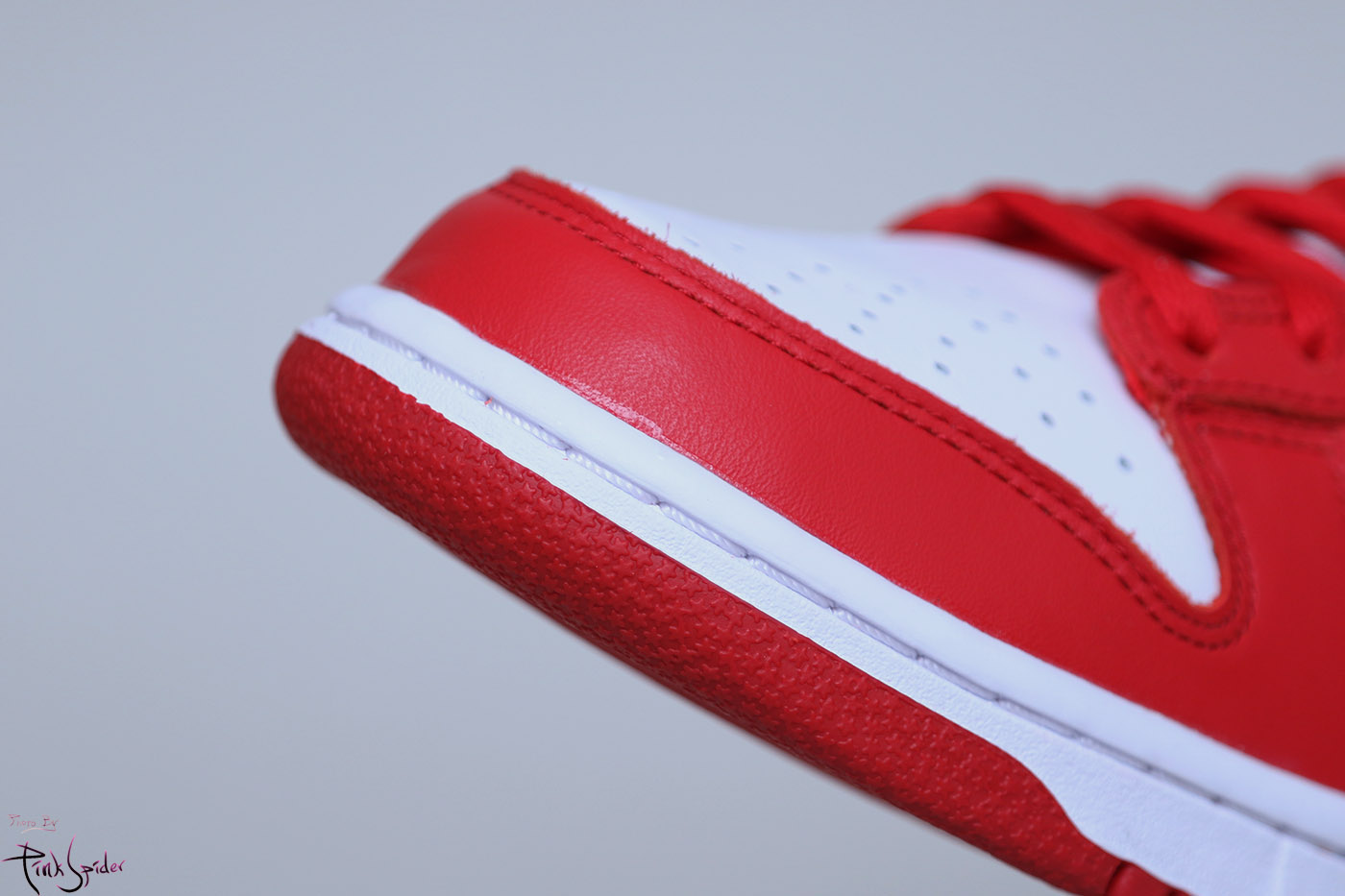 이번 덩크로우 화이트 & 유니버시티 레드에는 천연 소가죽을 사용했다.