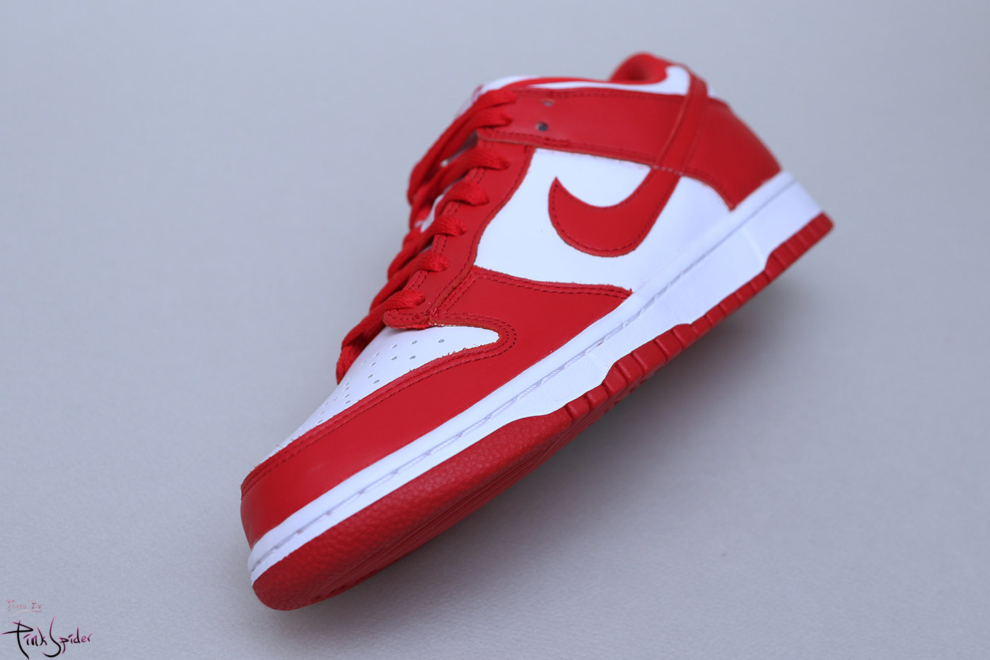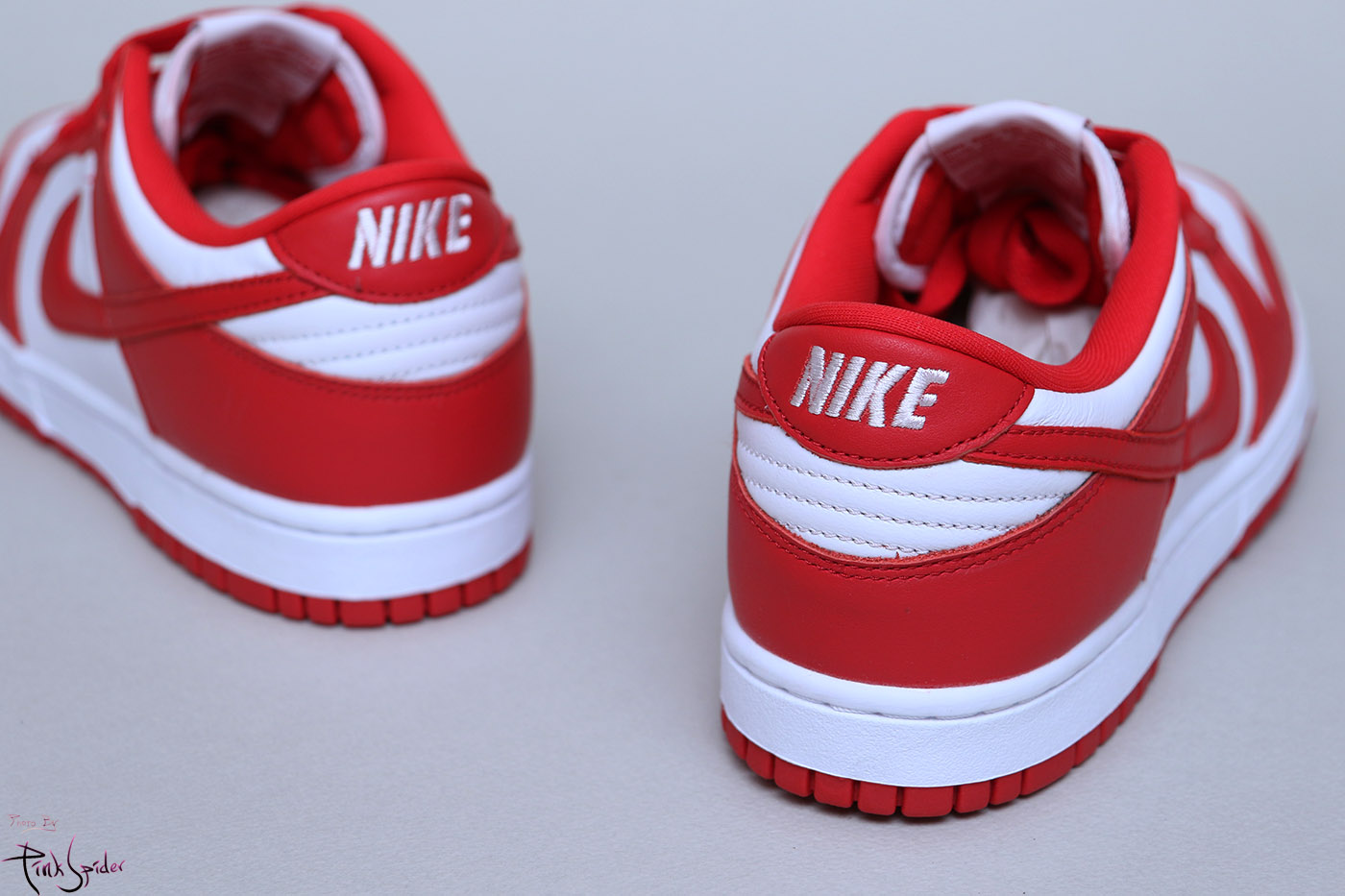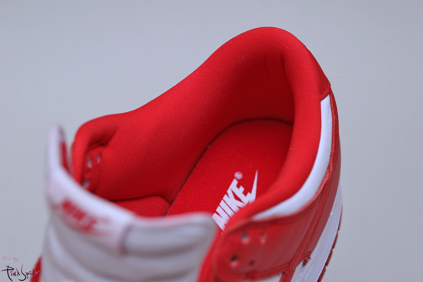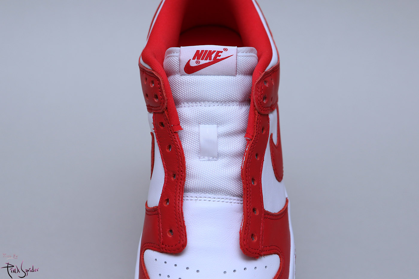 이번 덩크로우 화이트 & 유니버시티 레드에는 천연 소가죽을 사용했다.