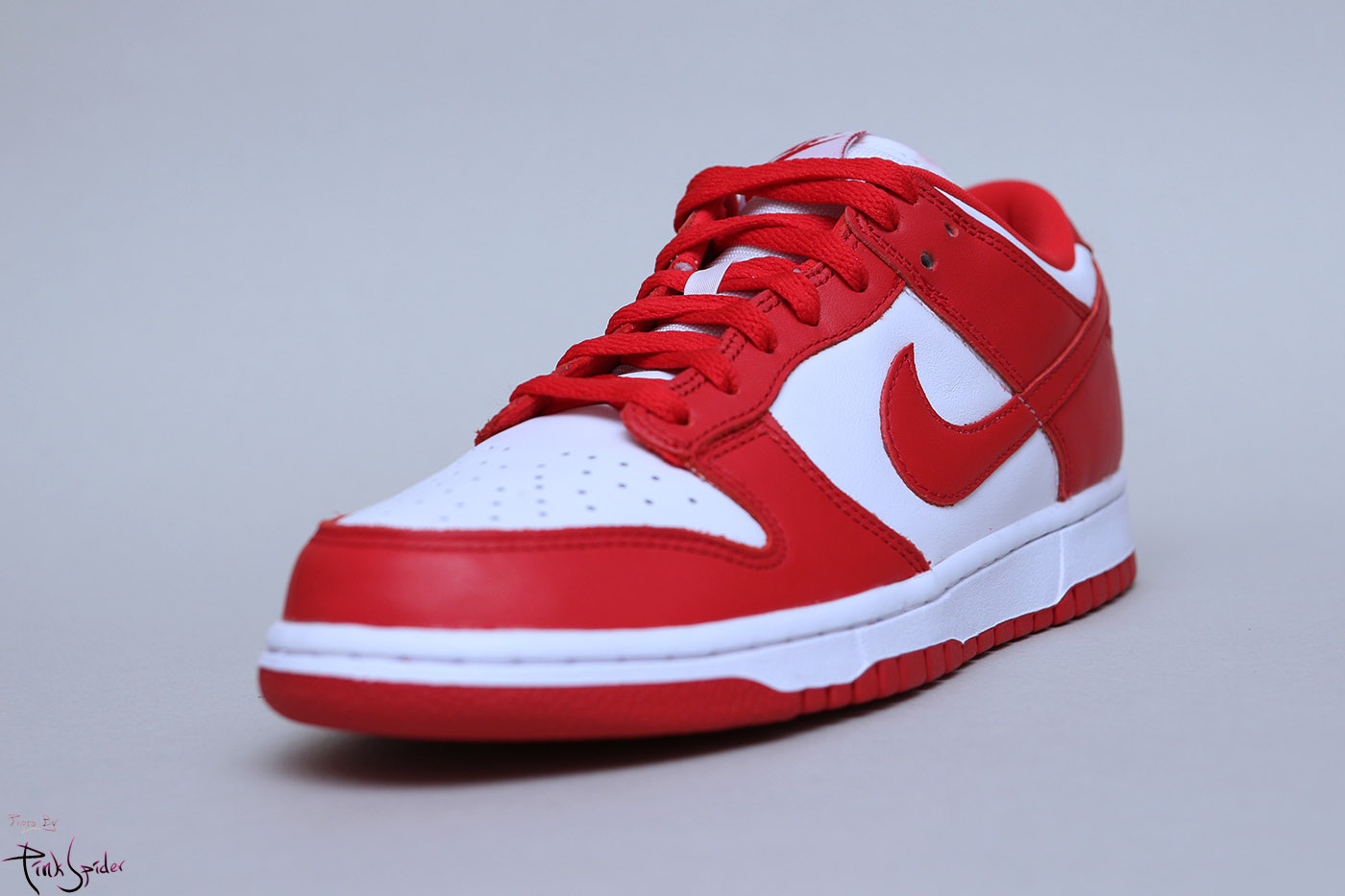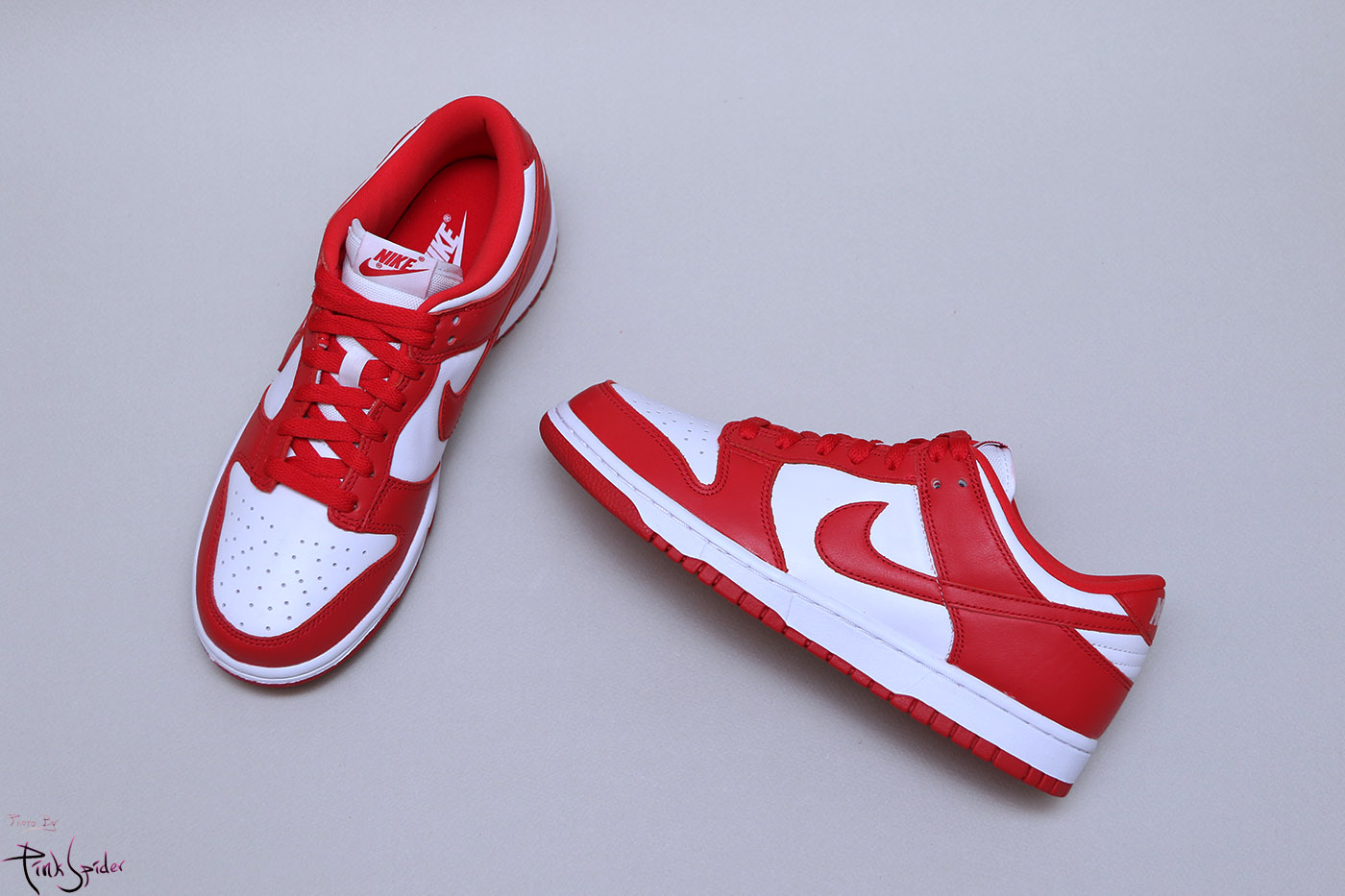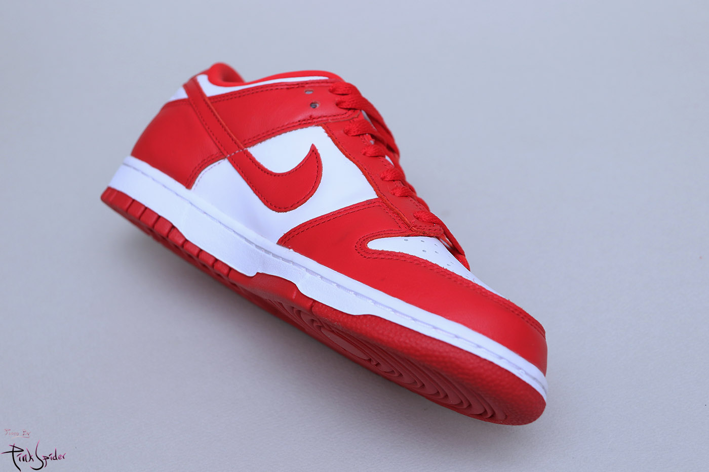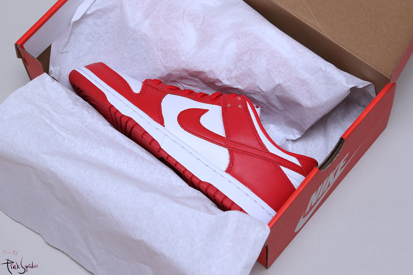 이번 덩크로우 화이트 & 유니버시티 레드에는 천연 소가죽을 사용했다.