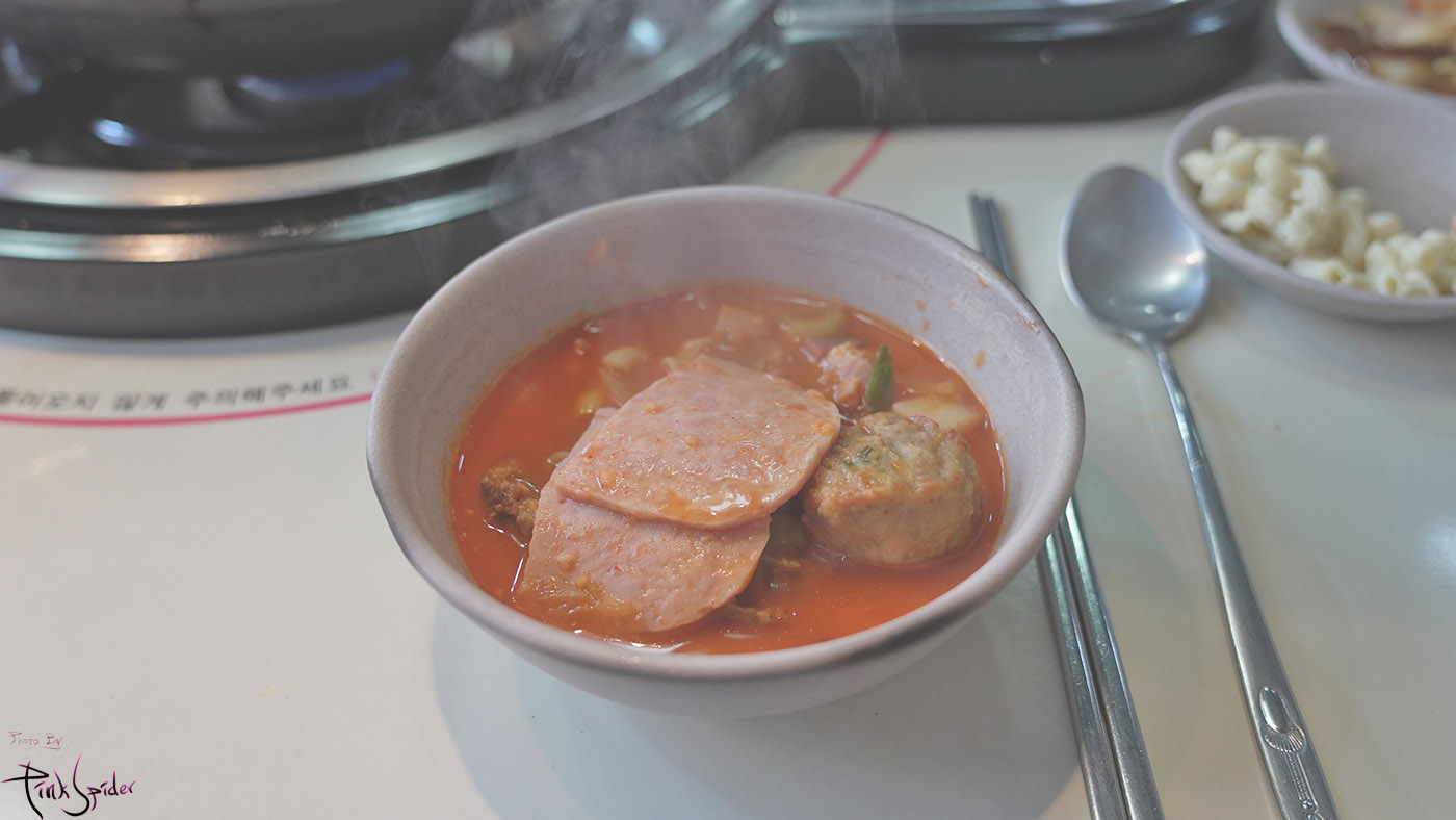 보통 유명한 부대찌개 가게에서는 레드빈이 들어가는데 여기는 특이하게 맥엔치즈가 들어가더라.