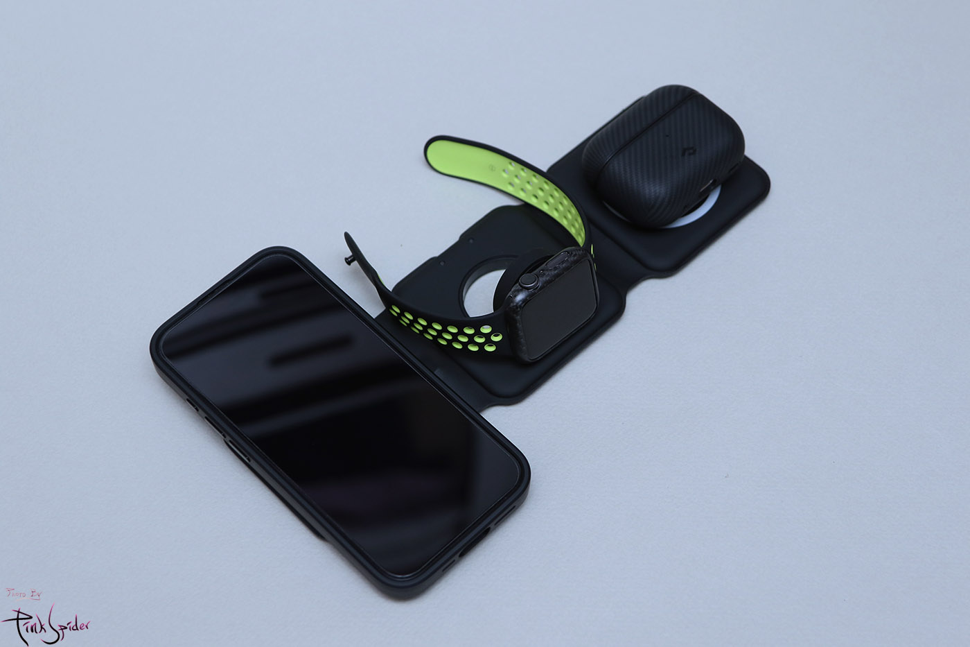 이 3 in 1 휴대용 충전 패드의 경우에 최대 출력은 15W다.