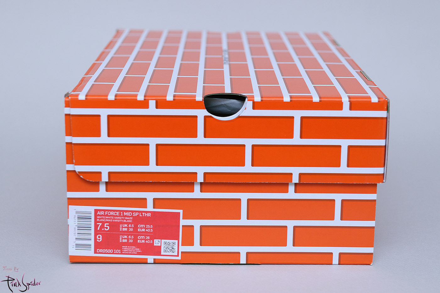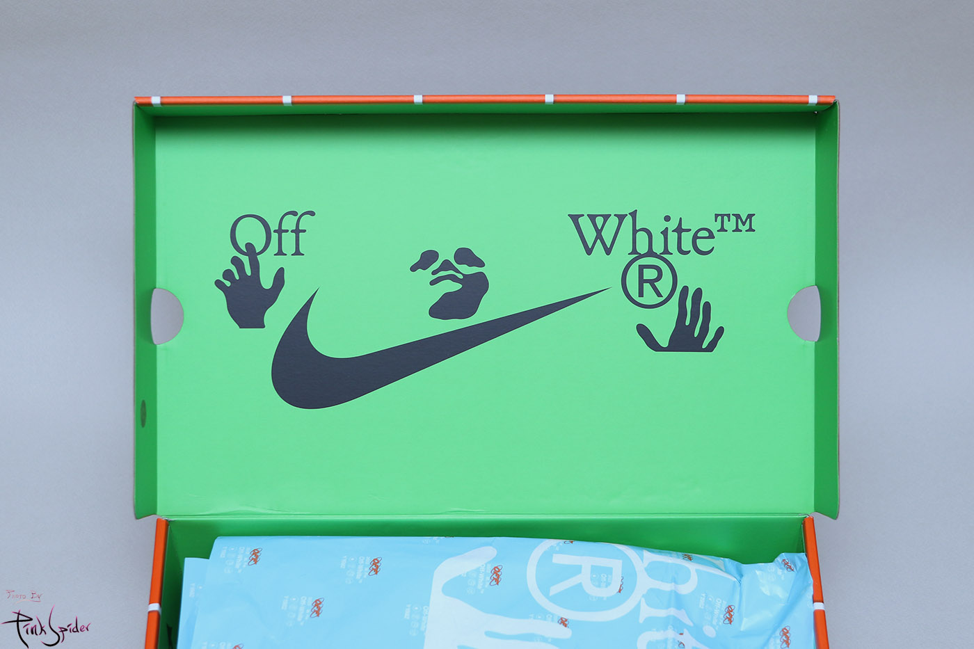 상단에는 마치 벽을 넘어서 보이는 것처럼 오프화이트와 나이키 콜라보 문구가 새겨지 있고