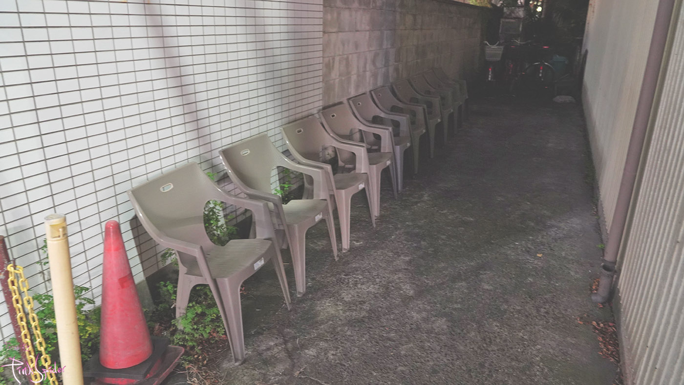 가게 옆에 의자에서 순서대로 기다리라는 얘기고 가끔 자리는 잡아 놓거나 시끄럽게 하는 경우가 있어서