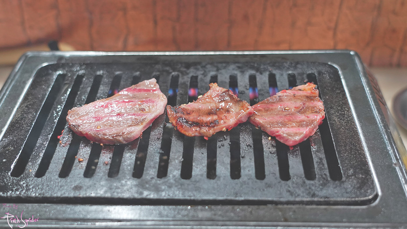 혼자왔으면 이렇게 불판 하나를 혼자 차지해서 사용할 수 있고