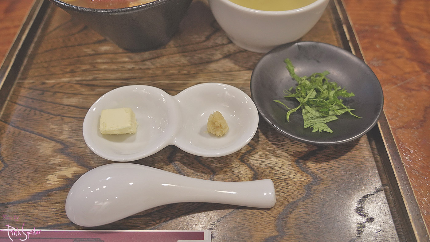 로스트 비프동에 소꼬리를 고아서 만든 수프, 일본 깻잎인 시소 그리고 와사비랑 치즈도 같이 나옴