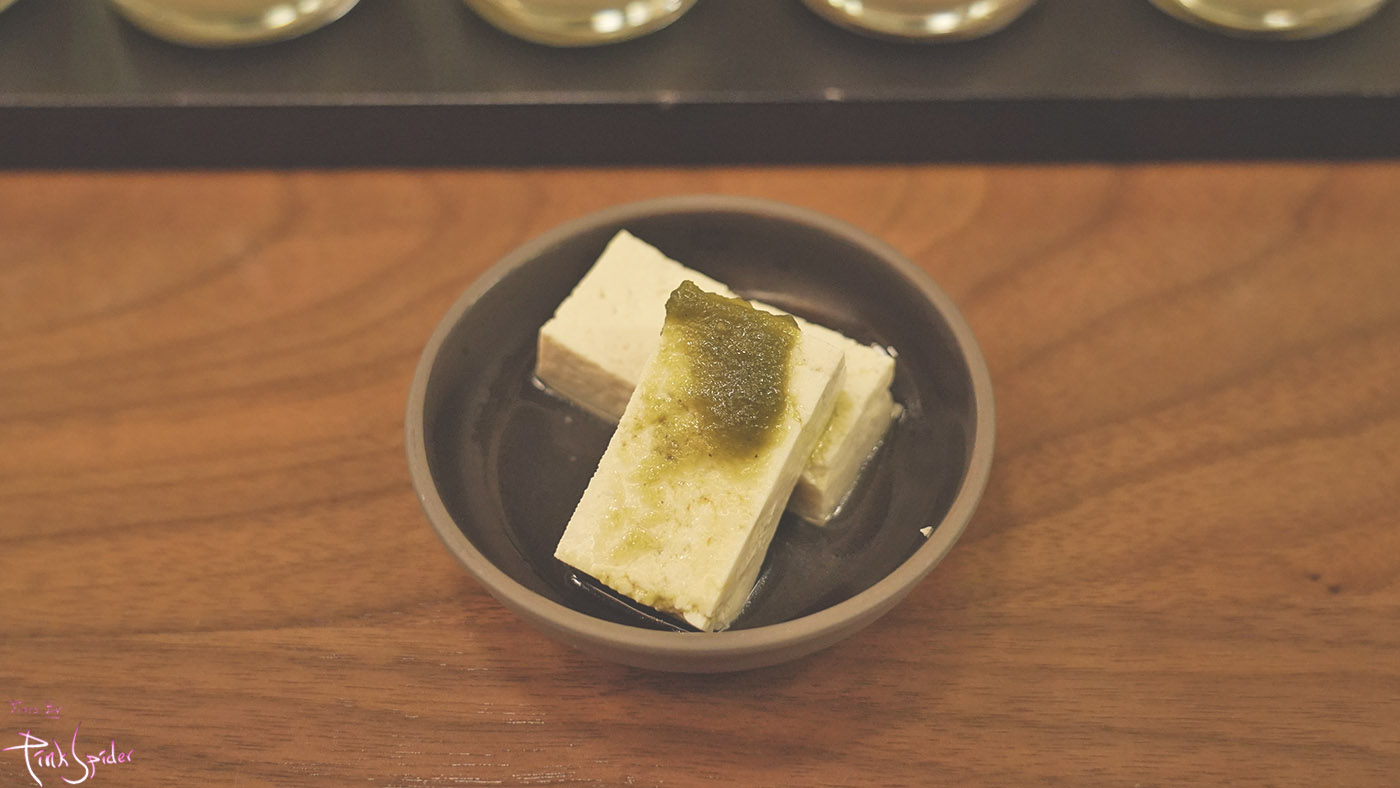 막걸리 샘플러랑 살라미 그리고 오토오시처럼 해초가 올려진 두부가 나왔는데