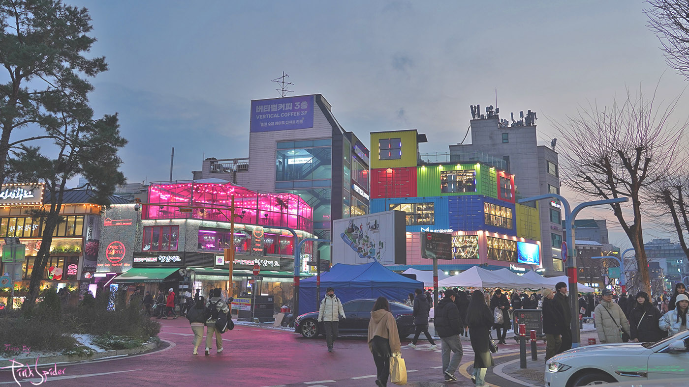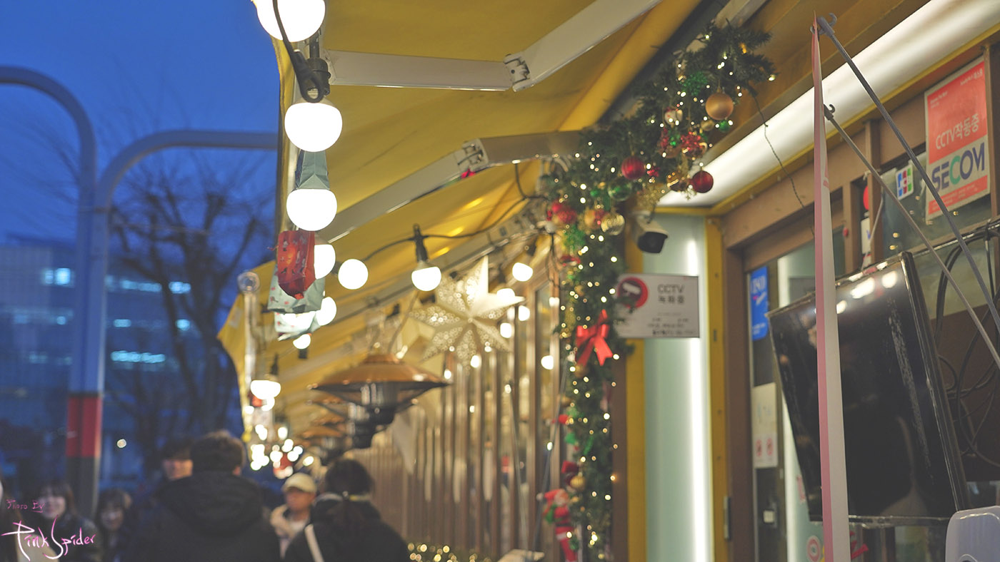 크리스마스 이브고 하니 홍대는 도로변부터 북적거린다.