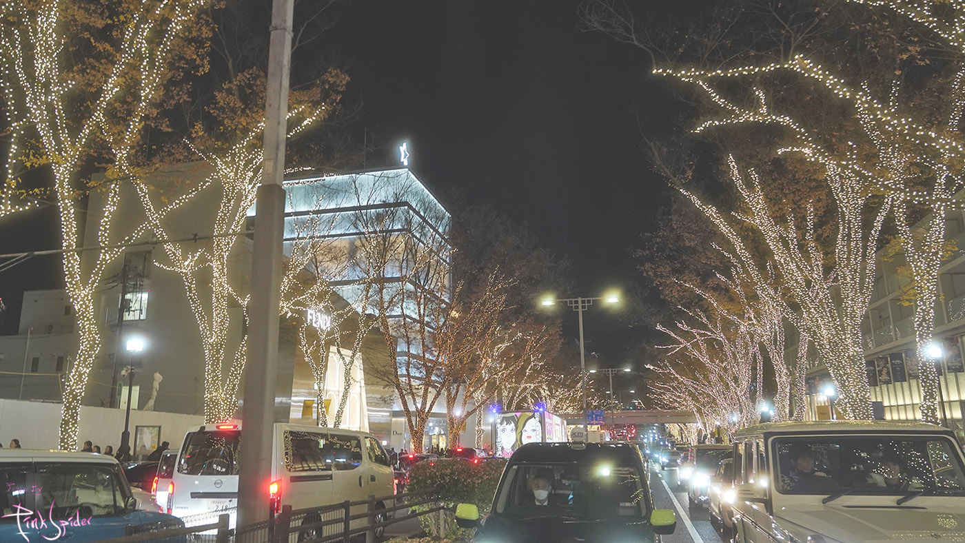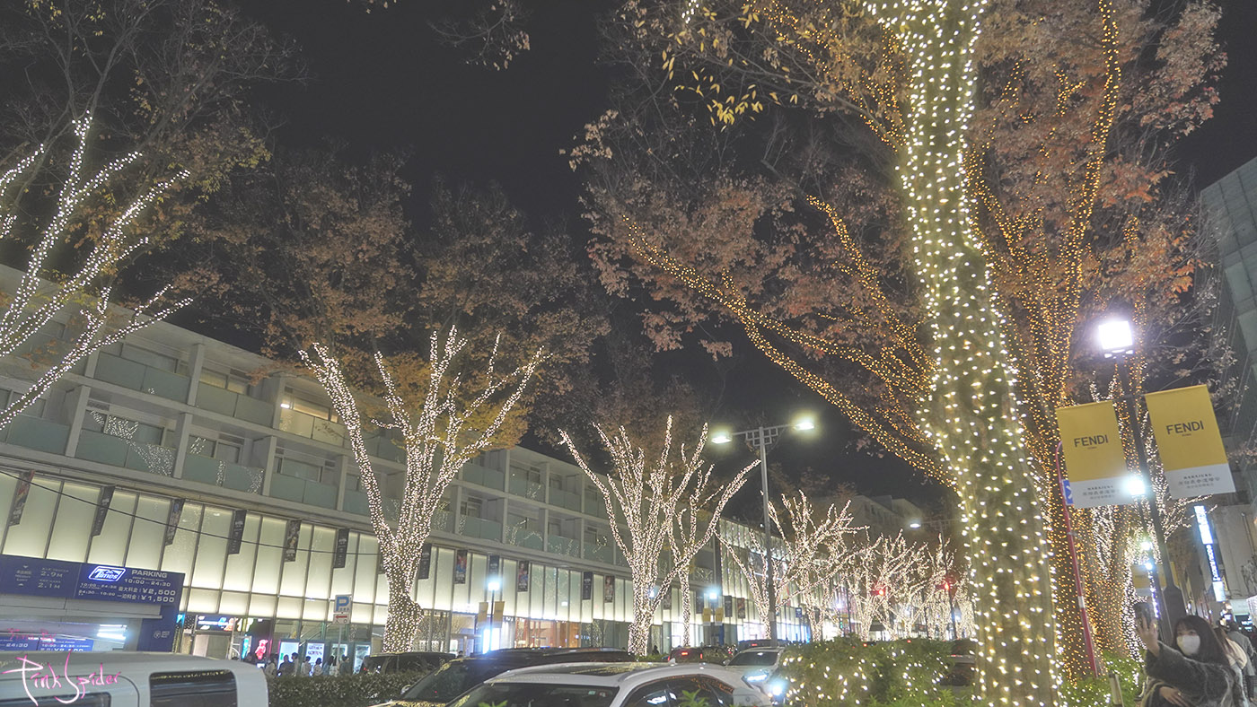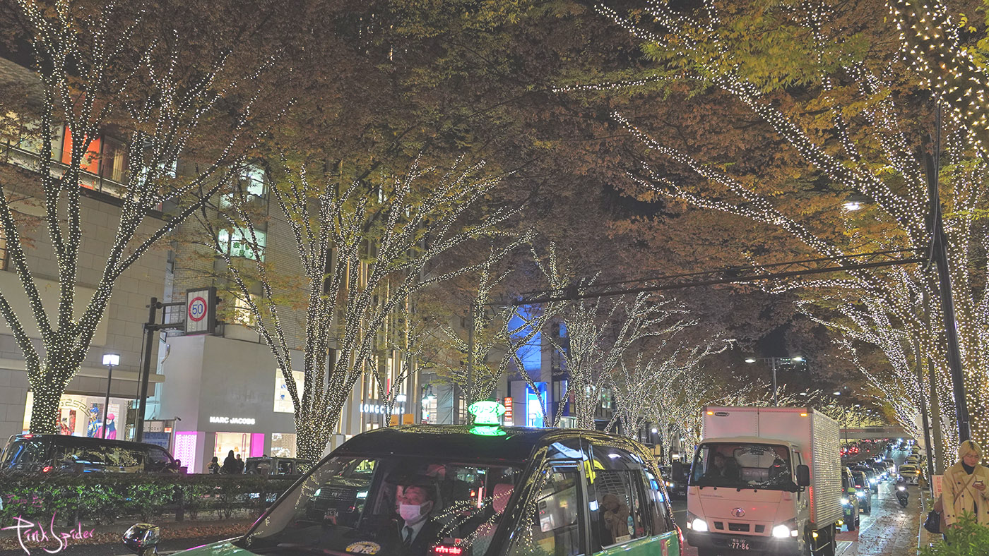 이 맘때 쯤의 오모테산도는 여전히 차들이 많고 일루미네이션 보며 사진찍으려는 사람들로 북적거린다.