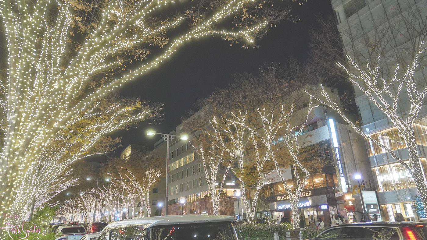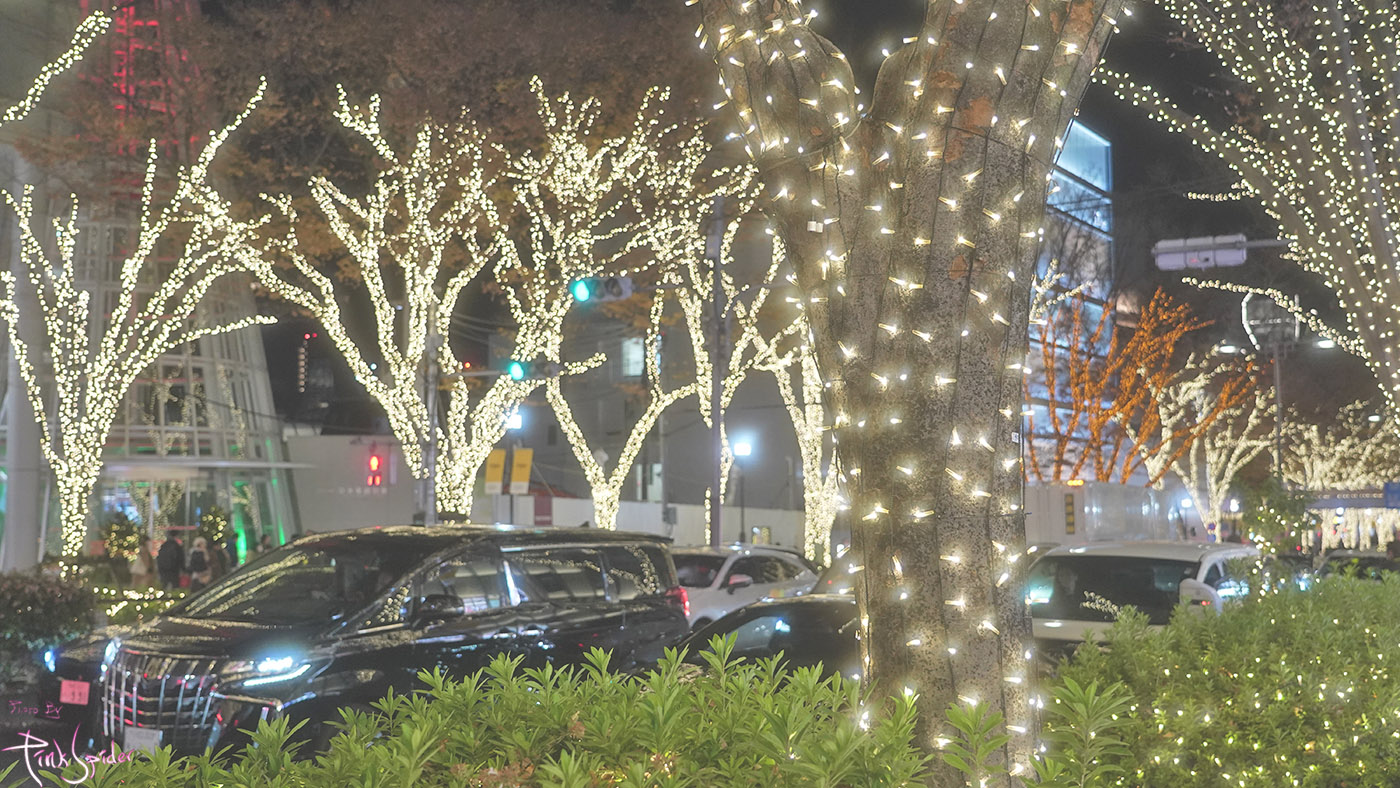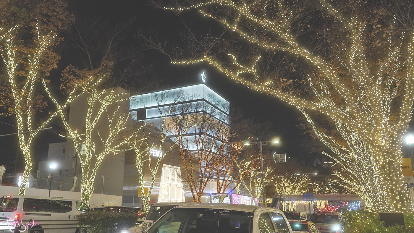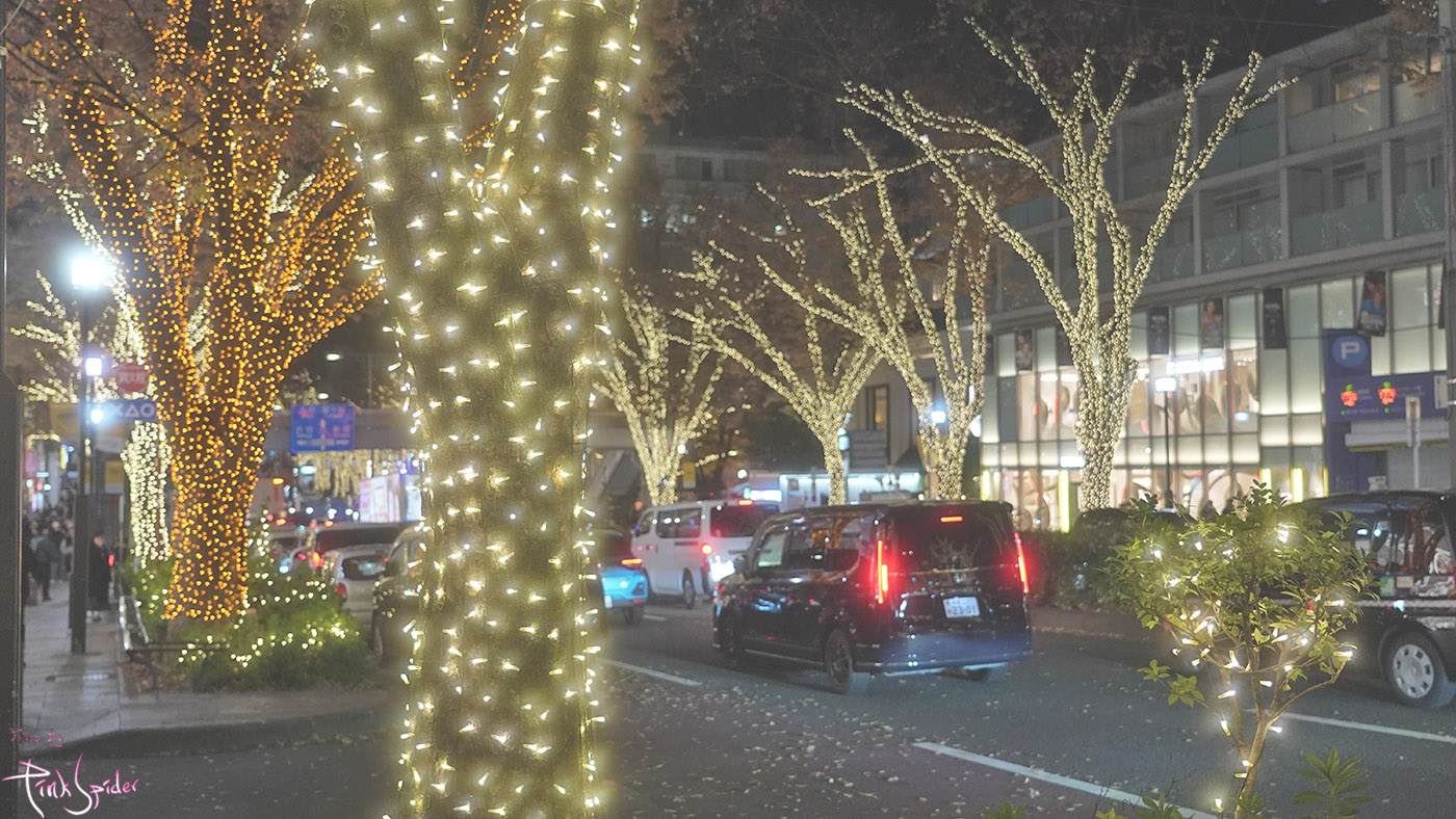 이 맘때 쯤의 오모테산도는 여전히 차들이 많고 일루미네이션 보며 사진찍으려는 사람들로 북적거린다.