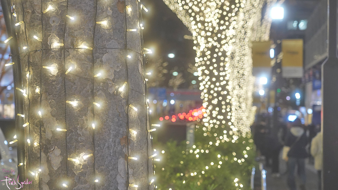 가로수들을 휘감은 조명도 좋지만 지나가는 차들 유리에 조명이 반사되어서