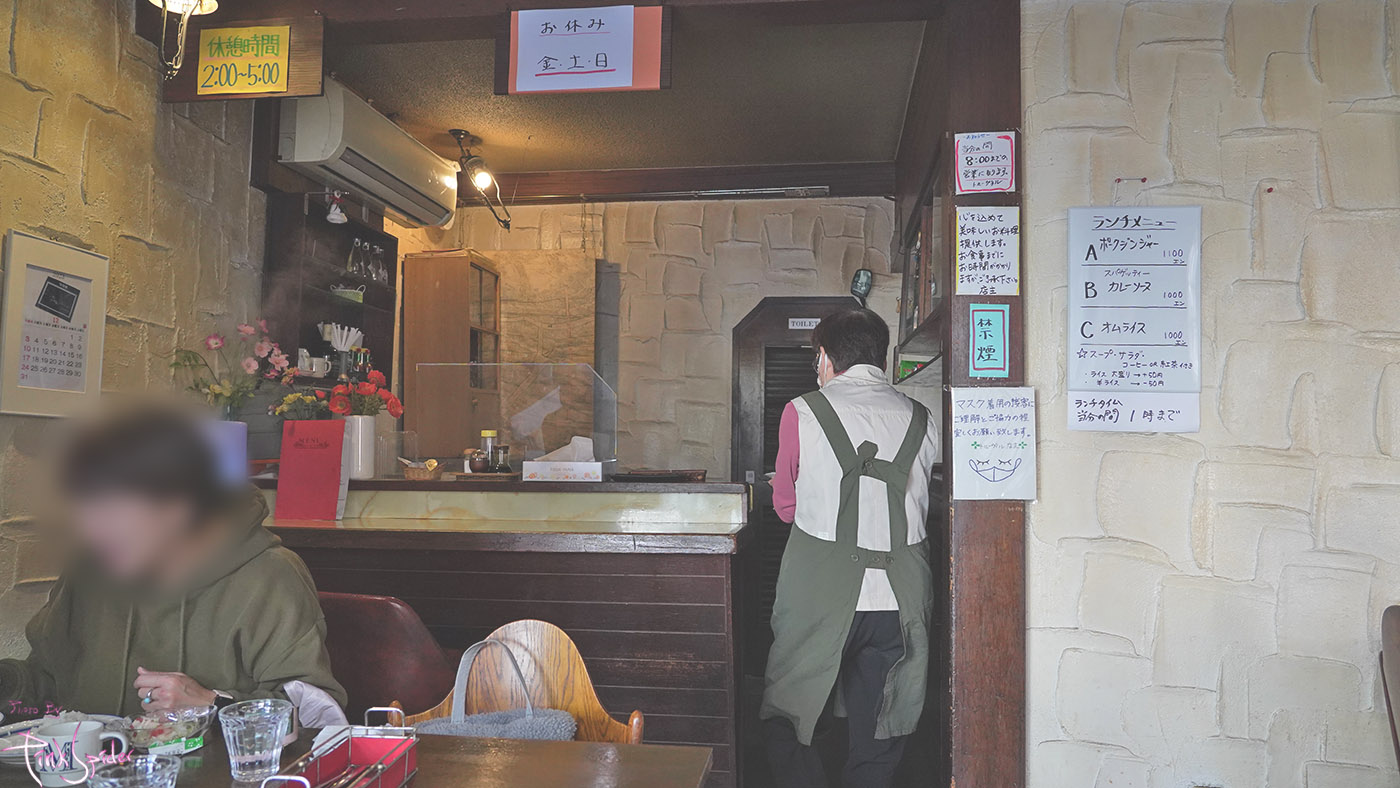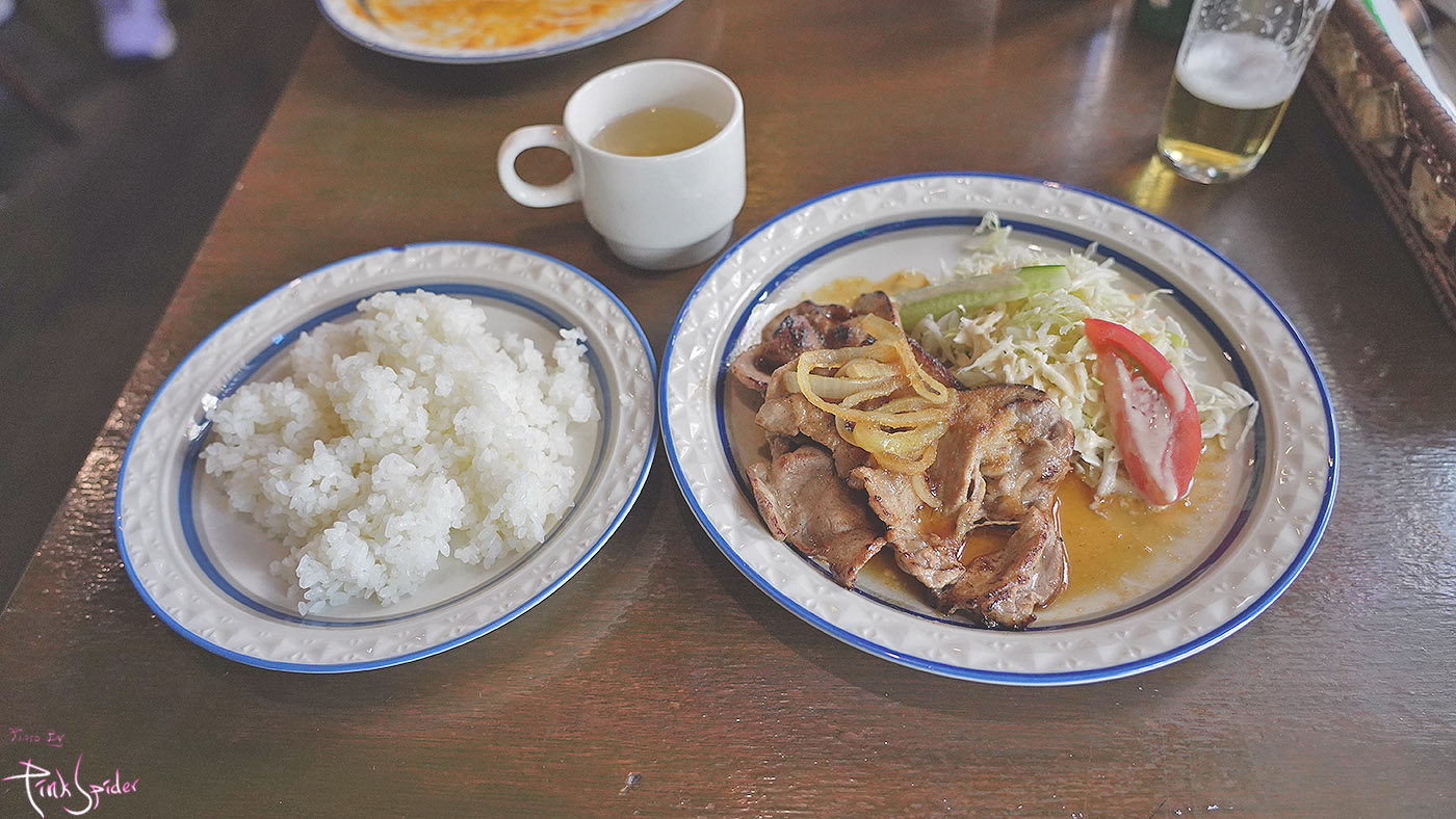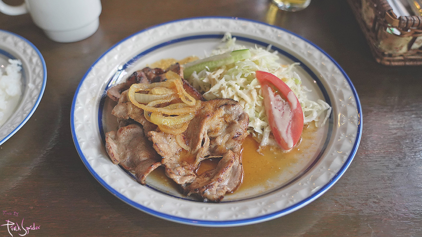 아무튼 주문은 포크진저 셋트 (스프, 샐러드 그리고 커피나 차 포함, 1100엔)이랑 나폴리탄을 주문