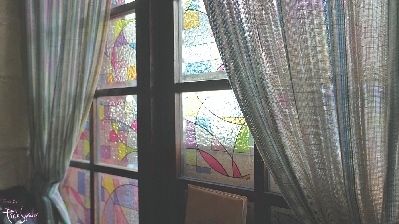 요즘은 쉽사리 볼 수 없는 색유리에 커튼 조합은 이런 경양식 분위기가 아니면 보기 힘들어서
