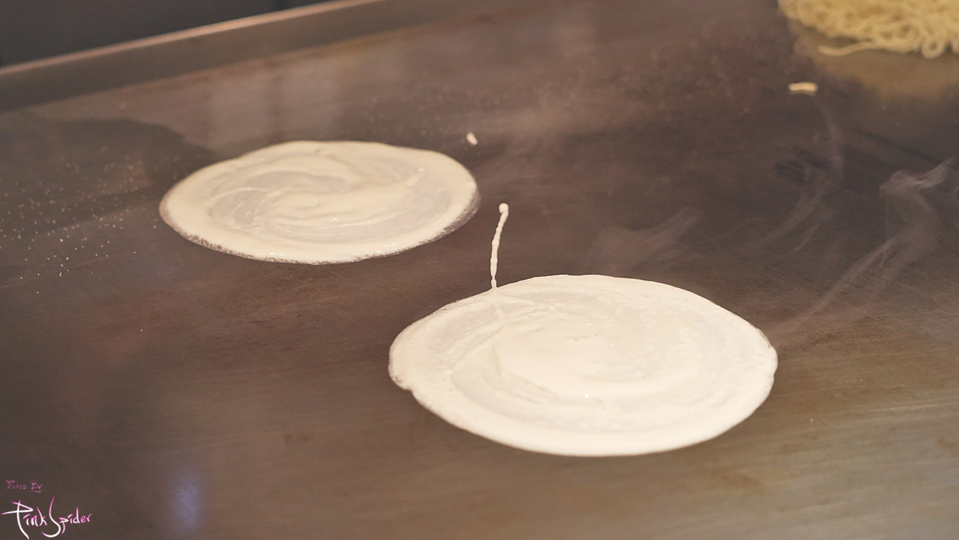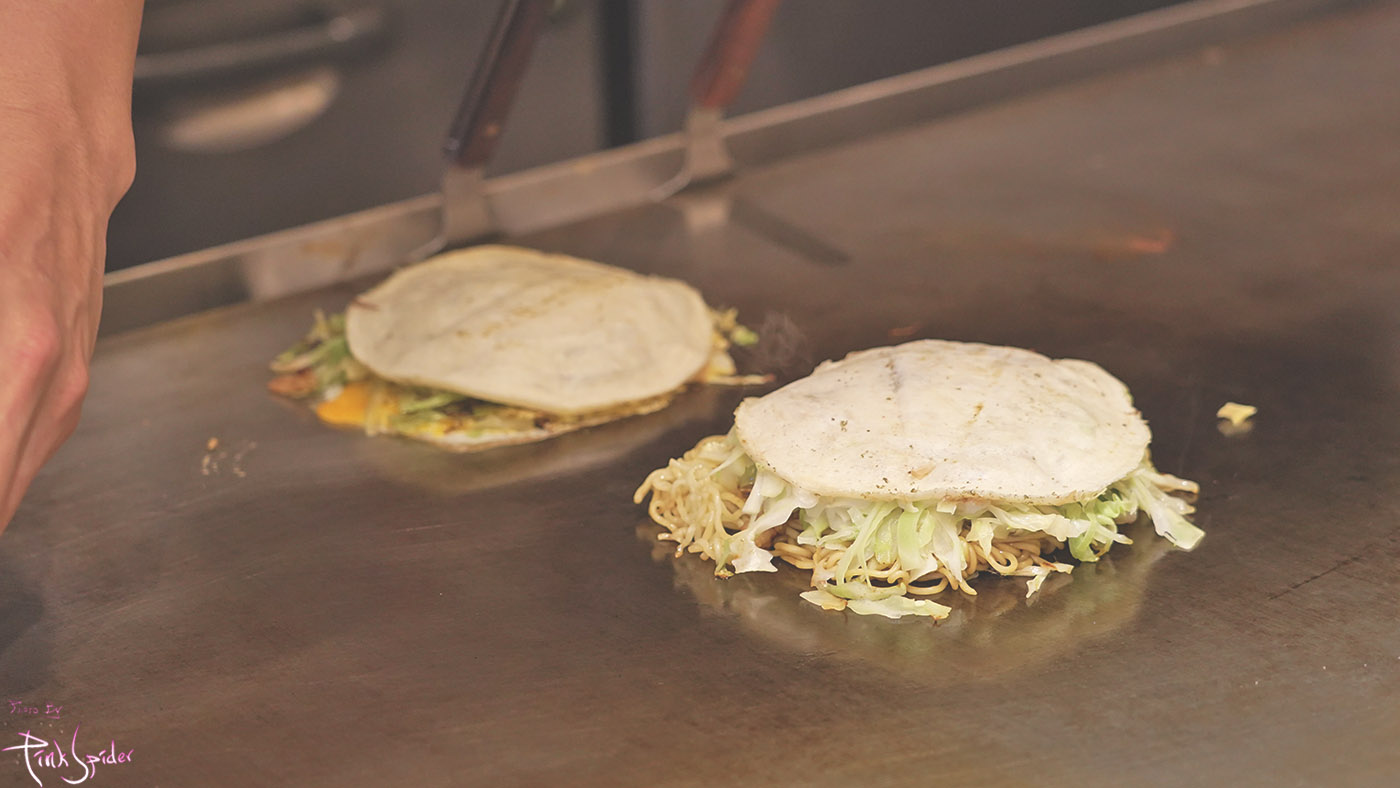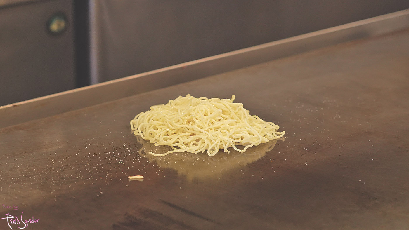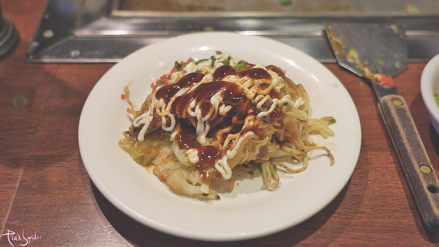 주문은 오징어, 새우 그리고 가리비을 올린 오코노미 야끼로 했고 면은 우동면과 소바면이 있는데