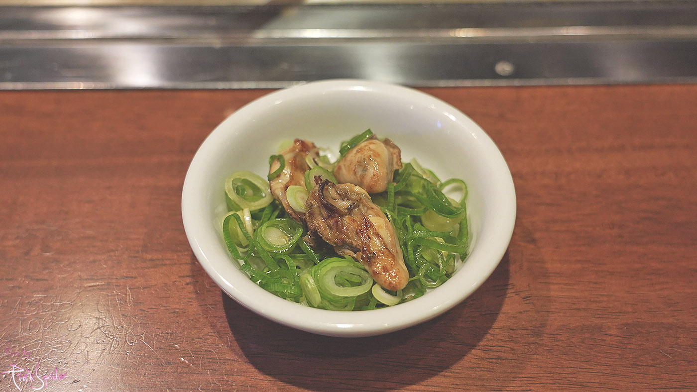 굴은 담백하고 유자폰즈에 버무려진 파는 아삭하면서 산뜻한게 굴이랑 잘 어울리는 조합이었고
