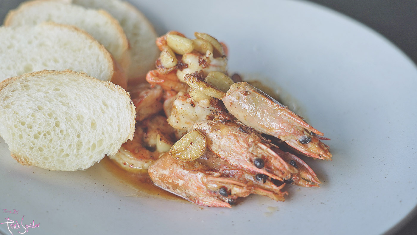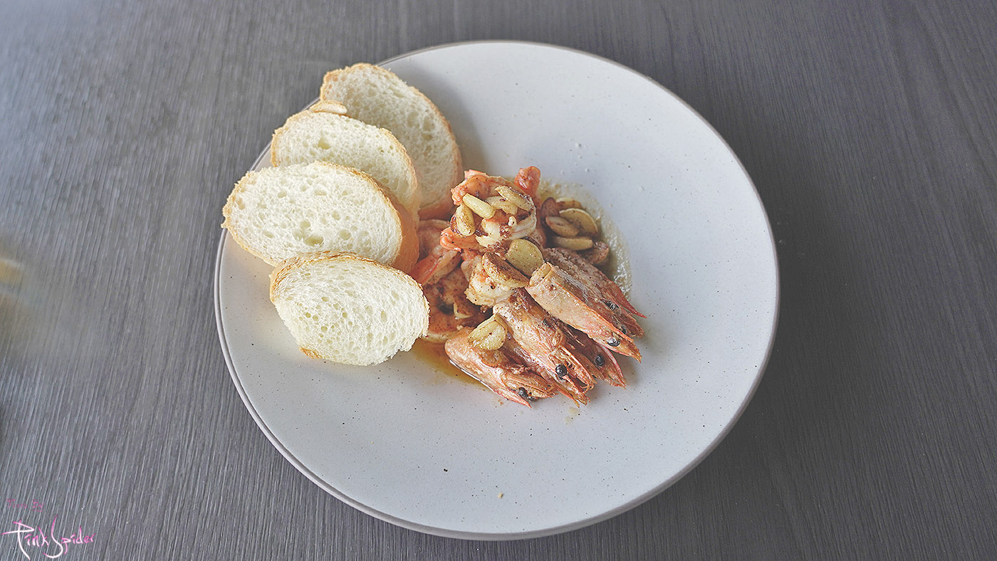 그 다음은 다시 오일에 바게트를 젹시고 잘 익은 마늘이랑 새우 꼬리살 부위를 같이 먹어봤는데