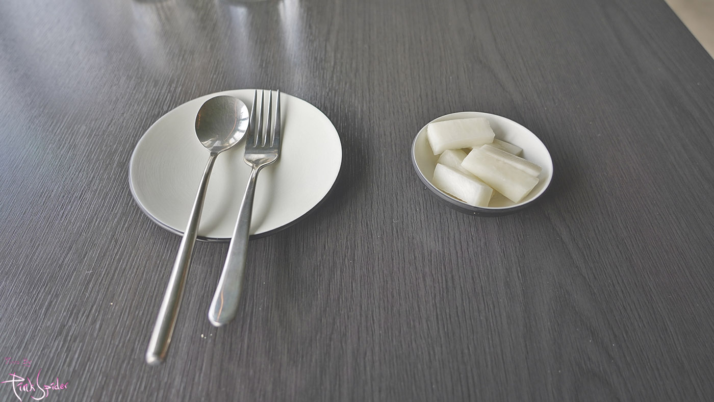 피클이 나오고 앞접시랑 식기를 세팅 해주심~