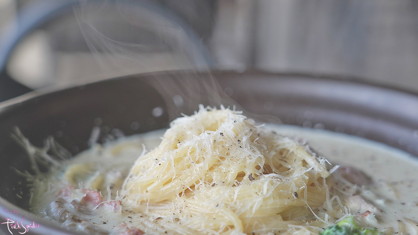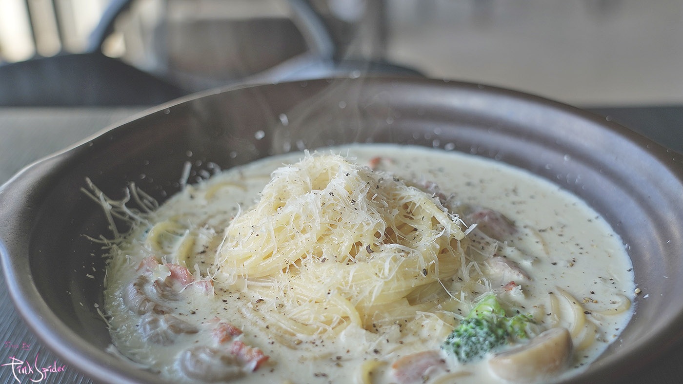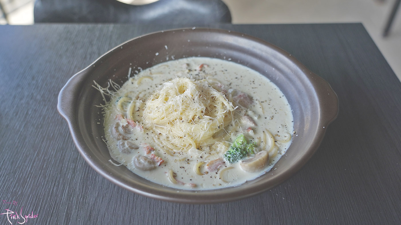 열심히 먹고 있을 때 까르보나라 파스타가 나왔다~