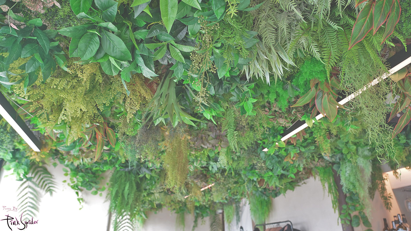 생물은 아니지만 천장을 전부 빼곡히 덮여 있는 인테리어는 처음 보는 것 같다.