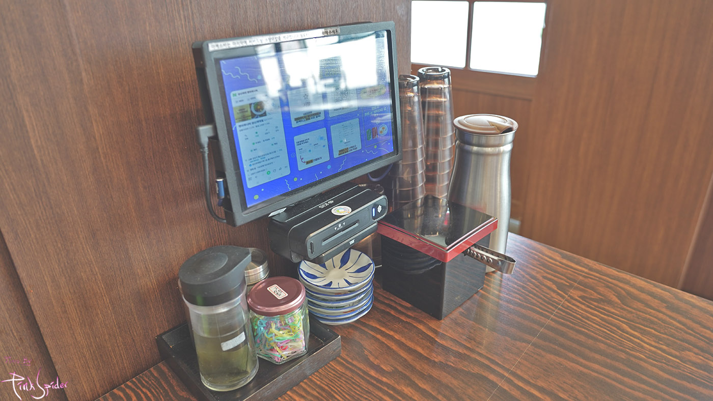 메뉴를 테블릿에서 선택할 수 있고 결제도 여기서 가능하니 상당히 편하다.