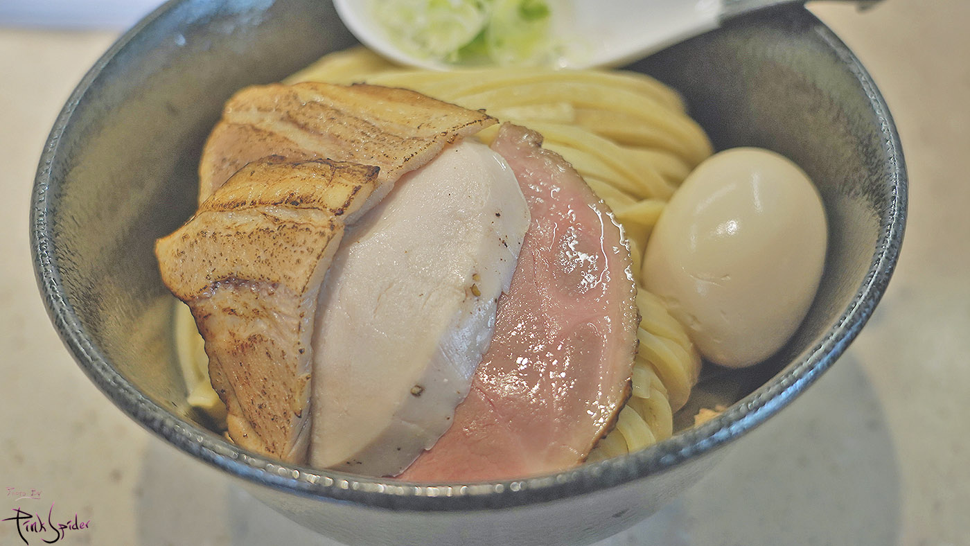 토핑은 불향을 입힌 삼겹부위 차슈, 닭가슴살, 목살 차슈 그리고 계란 구성