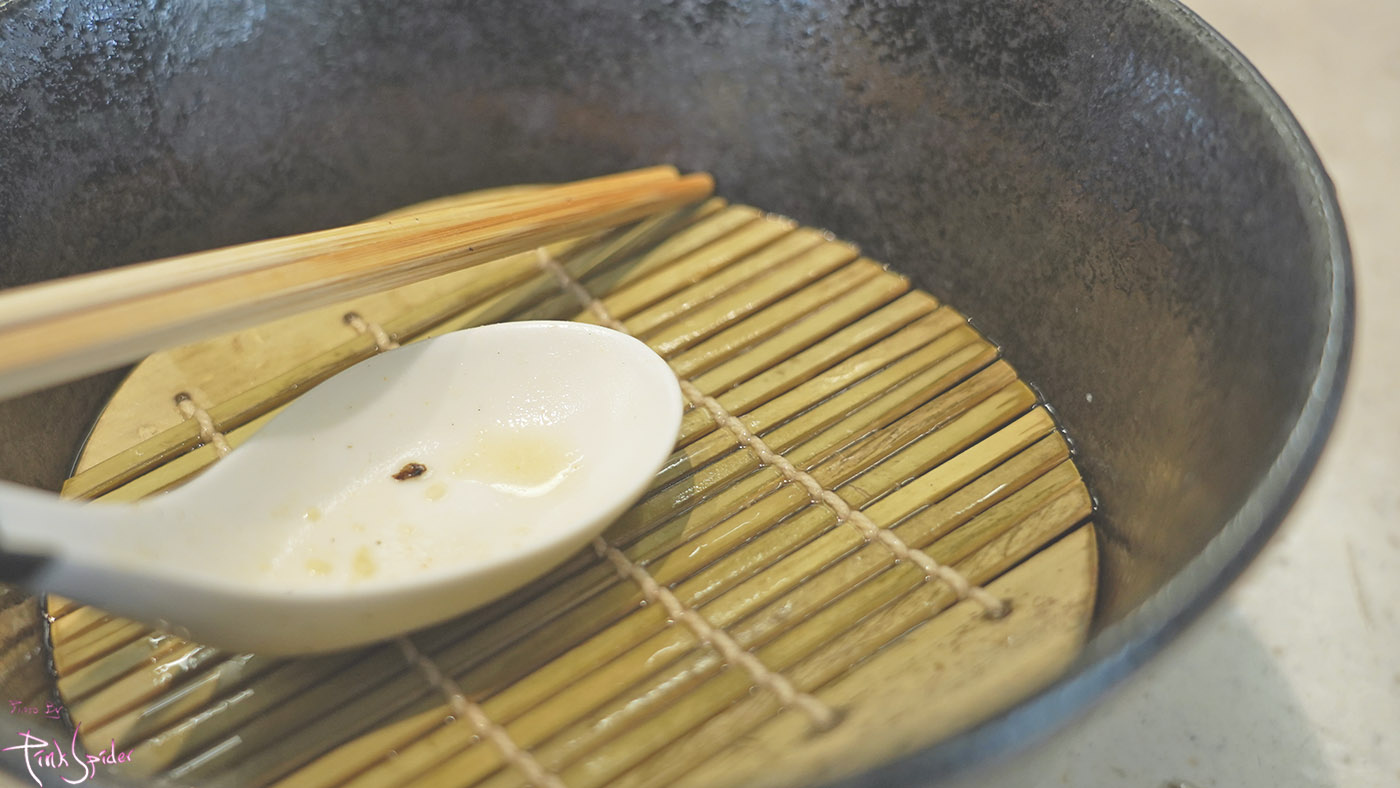 접시 안에 자루를 놓아두는 건 면의 물기를 바로 털어내고 그릇에 올라다보면