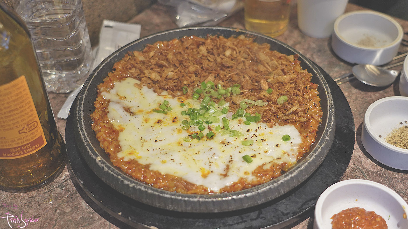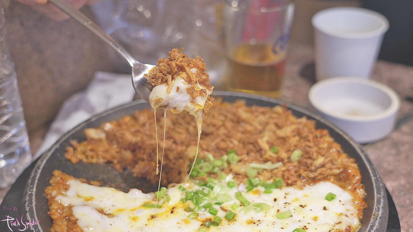 적당히 고슬고슬하면서도 누룽지 같은 식감에 반은 치즈가 올려져 있고