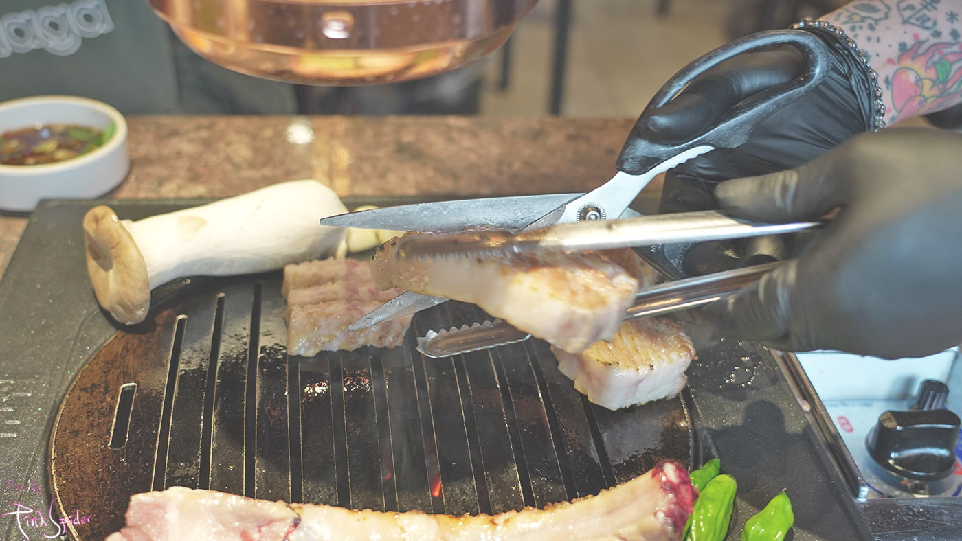 적당히 먹을 타이밍이 되면 김치도 따로 올려서 구워주심~
