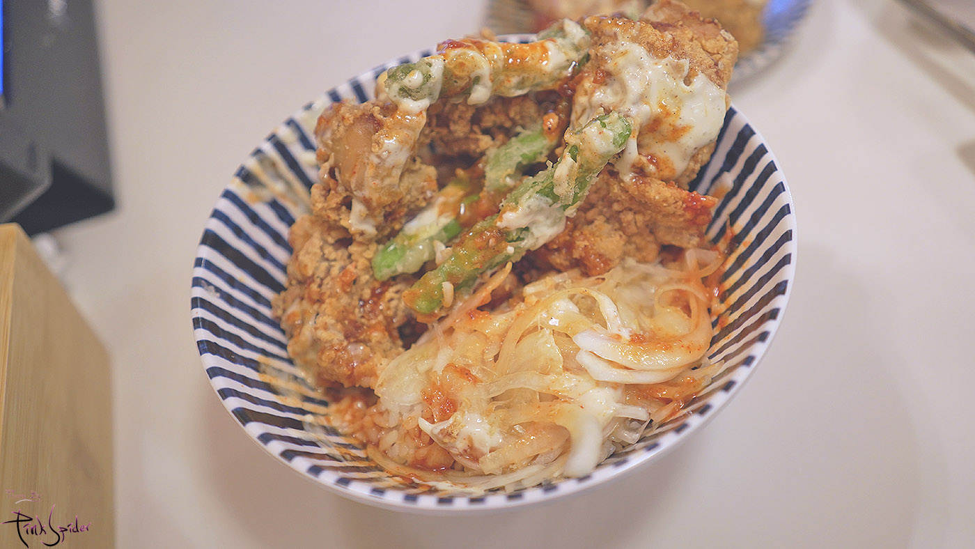 그 밑에 적당히 간장이 섞인 밥이 있어서 가급적이면 덜어내서 먹는게 좋을 것 같다.
