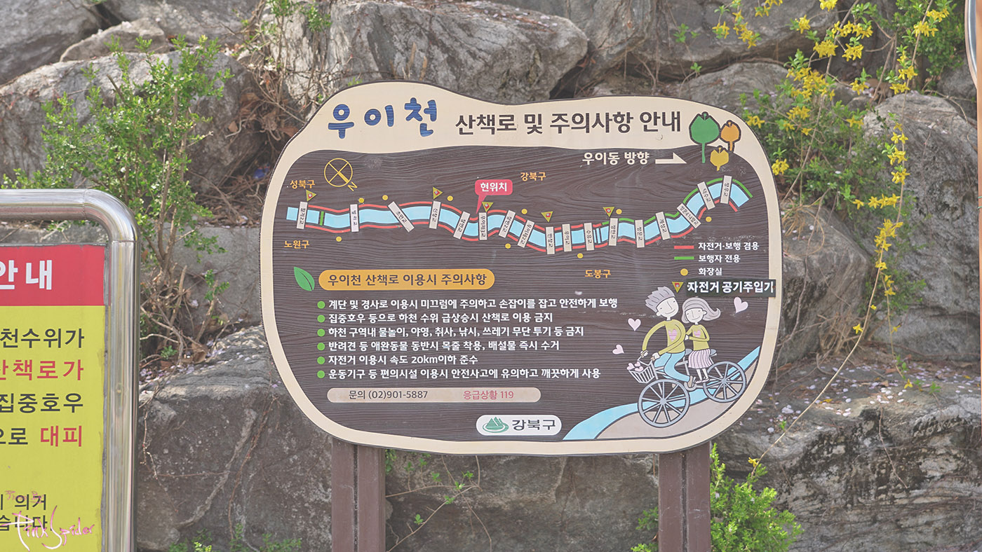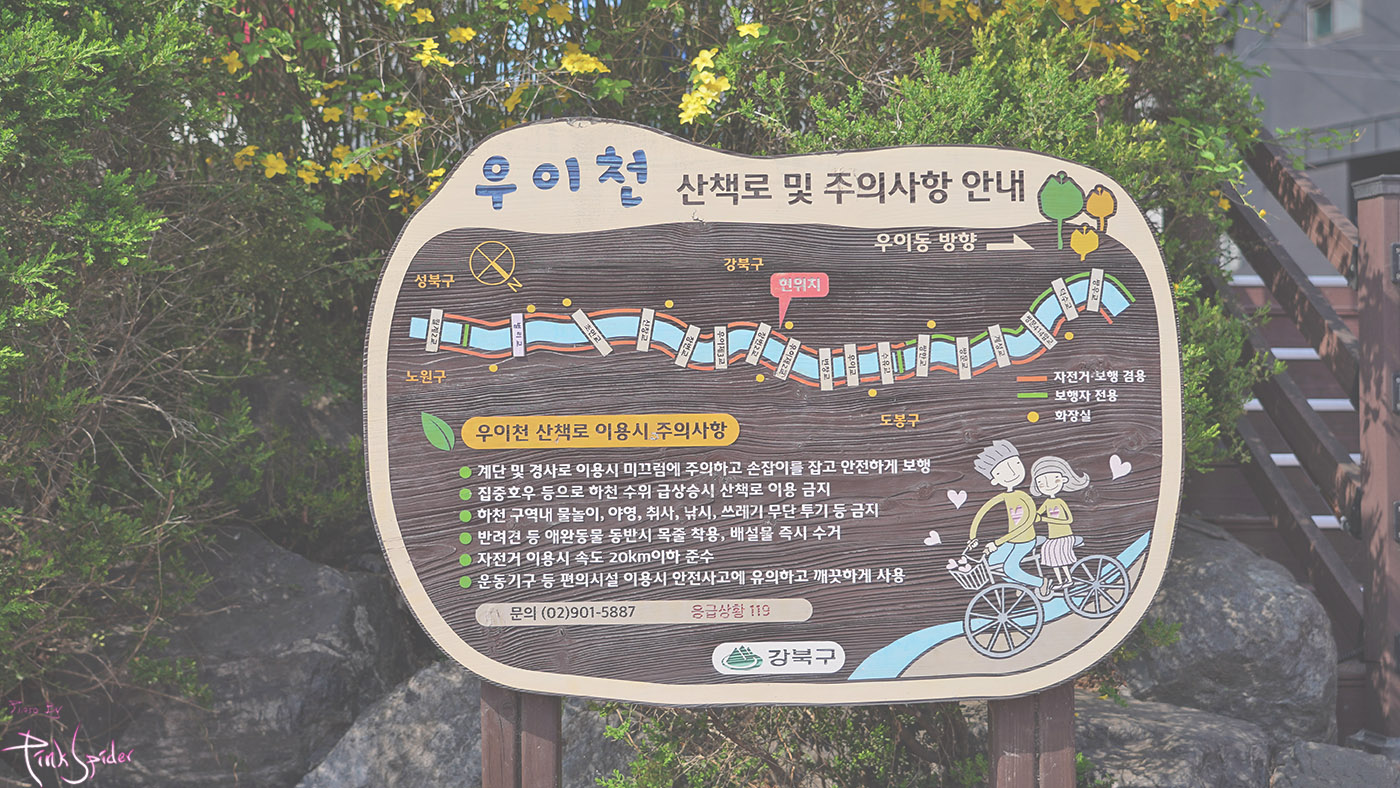 우이교를 시작으로 밑으로 내려가면 되는데 가급적이면 오른편으로 먼저 내려가는거 추천~