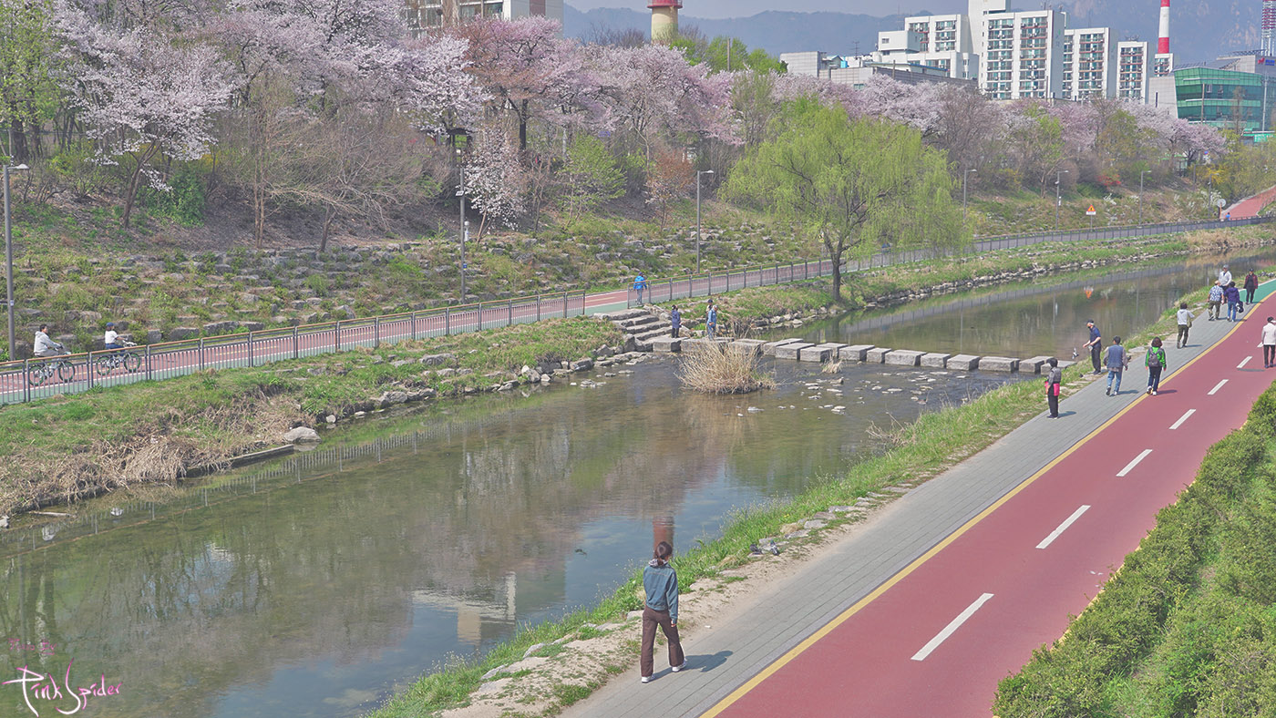 중랑천 쪽이나 여의도는 보통 한쪽에만 벚꽃이 있어서 살짝 아쉬운 느낌인데