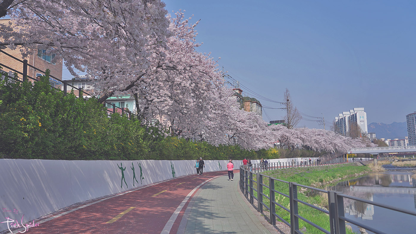 확실히 코스가 길기도 하고 폭도 제법 넓은 편에 벚꽃나무가 양쪽으로 줄지어 있어서