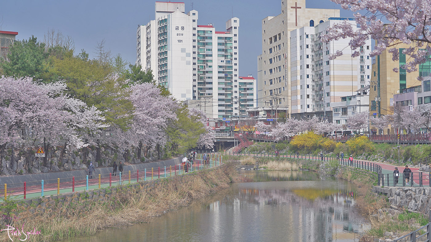 하천 바로 옆에 고층의 아파트라는 조합의 풍경이 좀 어색하긴 하다만